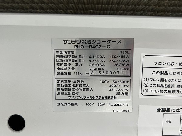 Ψ綺麗【 SANDEN / サンデン 冷蔵ショーケース PHO-R4GZ-C 2015年製 冷蔵160L 平型 厨房機器 店舗用品 100V アイス 冷凍食品 】P06228