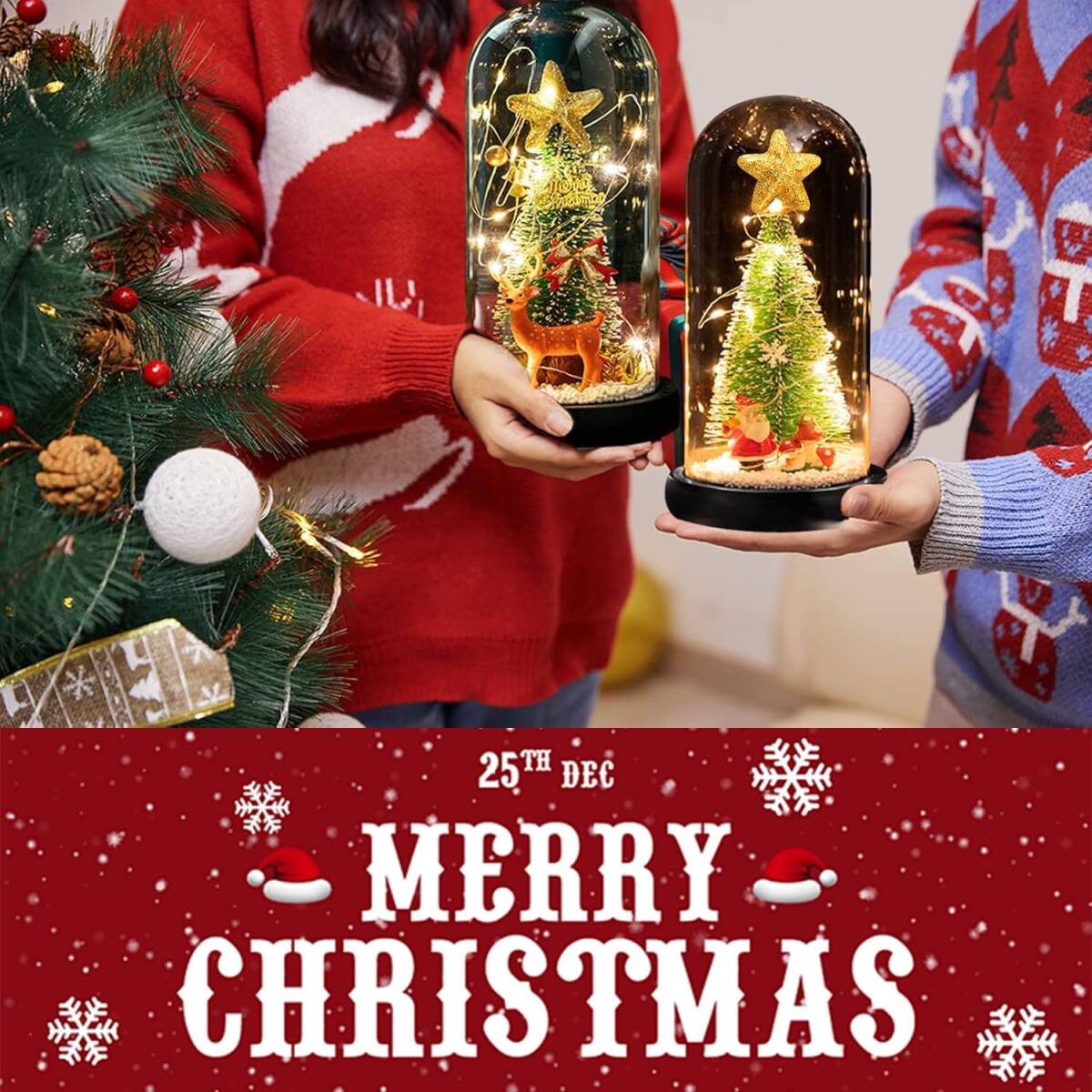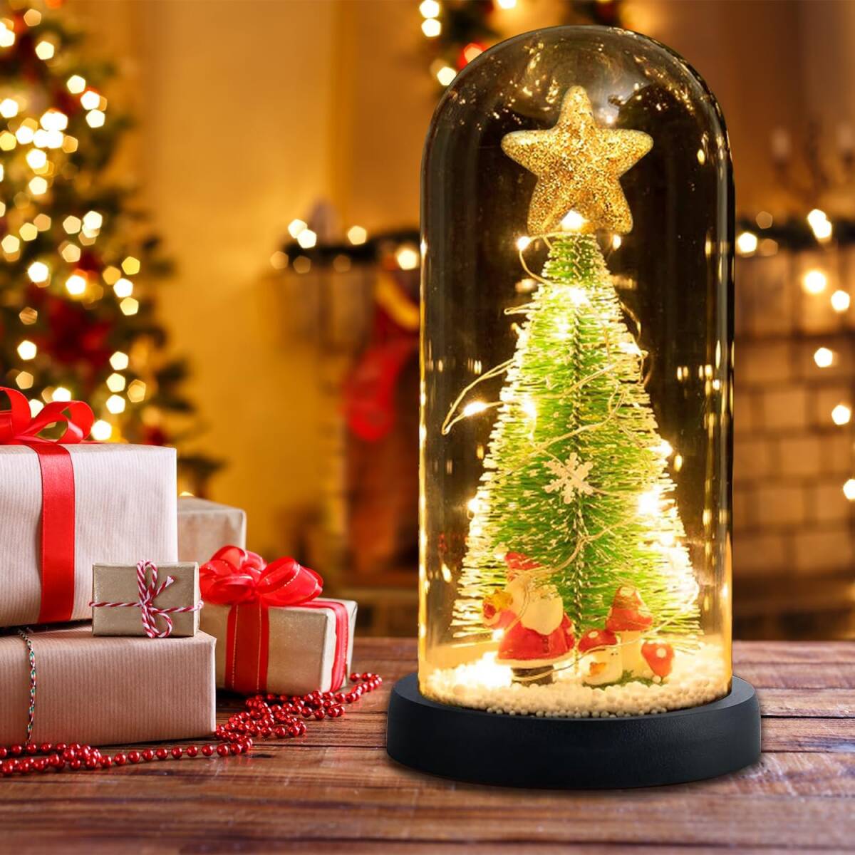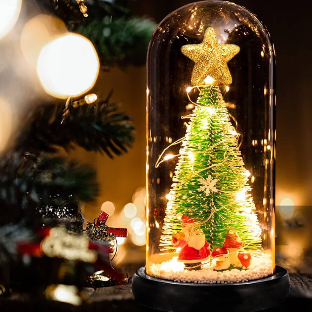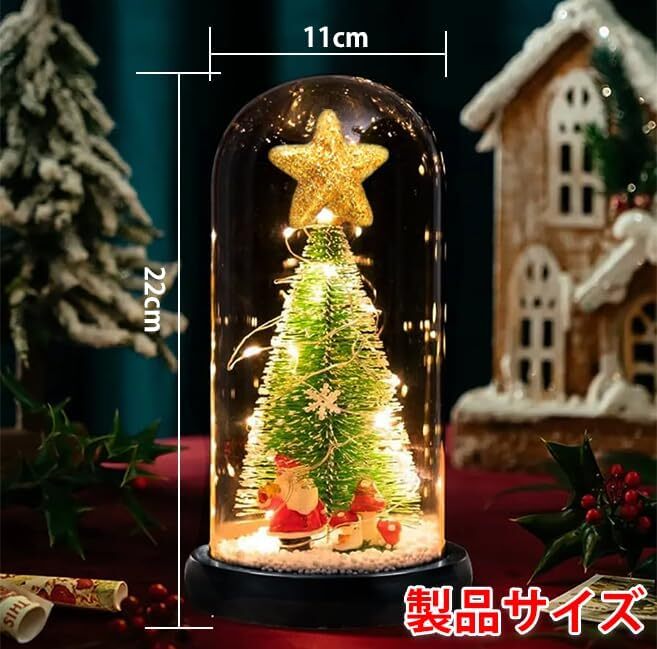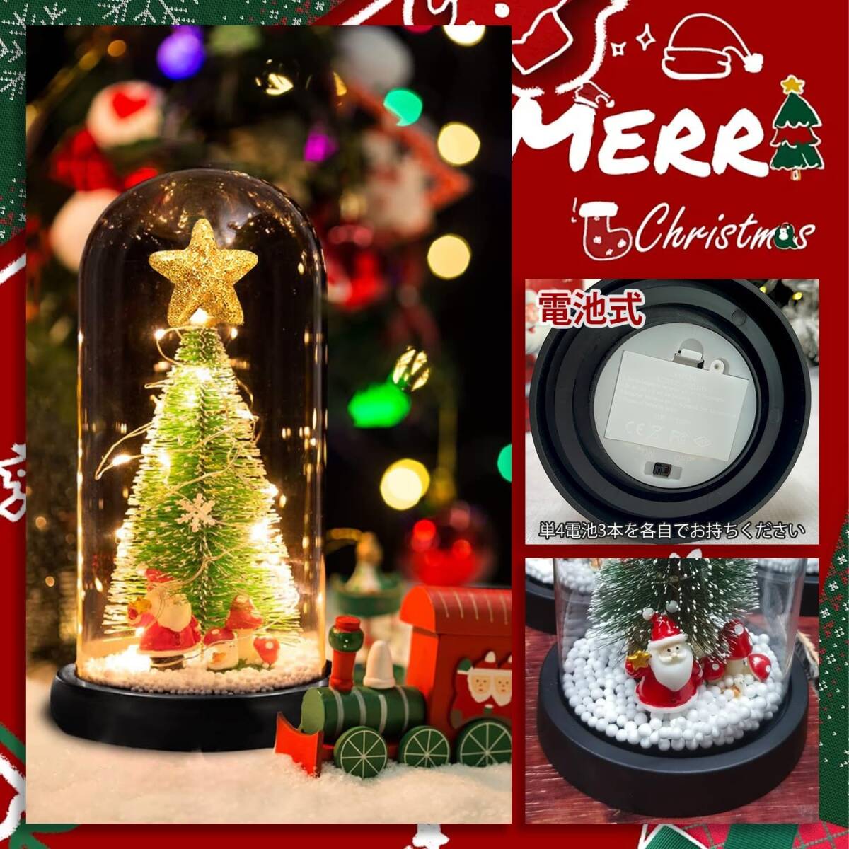クリスマスツリー ガラスドーム 卓上 電池式 LEDライト ミニツリー クリスマス飾り クリスマスギフト サンタスノーボール おしゃれ