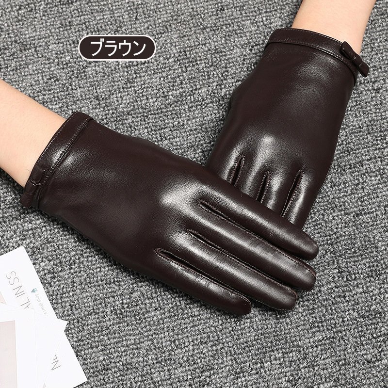 羊革 手袋 防寒 暖かい 柔らかい タッチパネル対応 シープスキン 女性 冬 裏起毛防風 大人 革 手ぶくろ 防寒 撥水 自転車 M/L ☆ブラウン