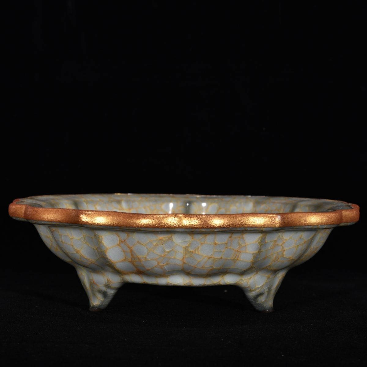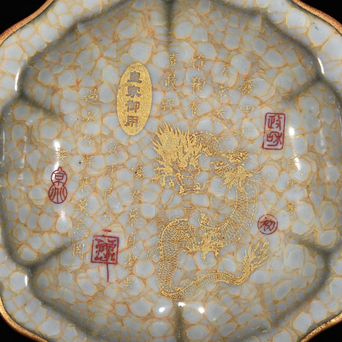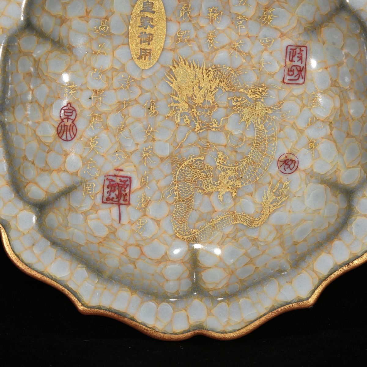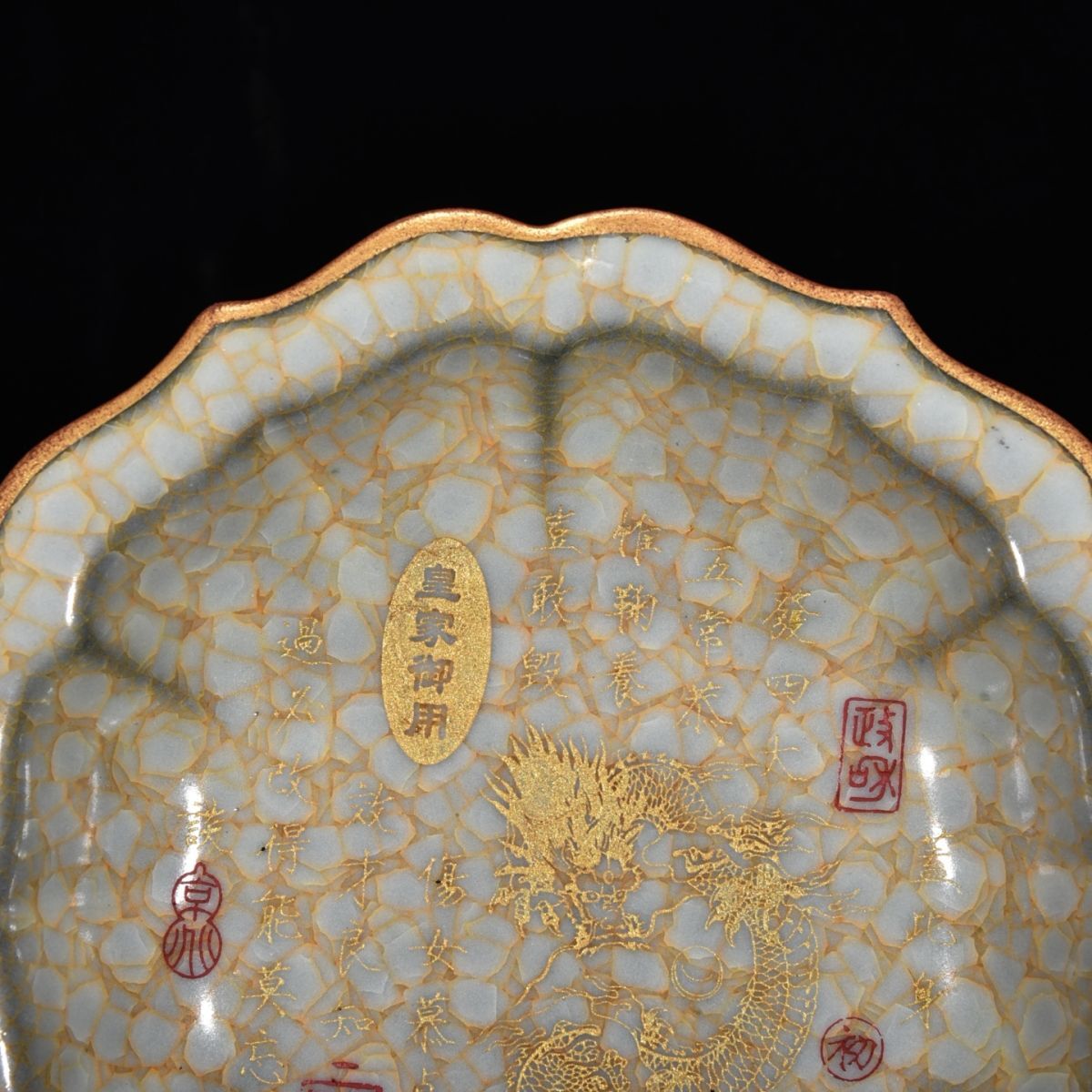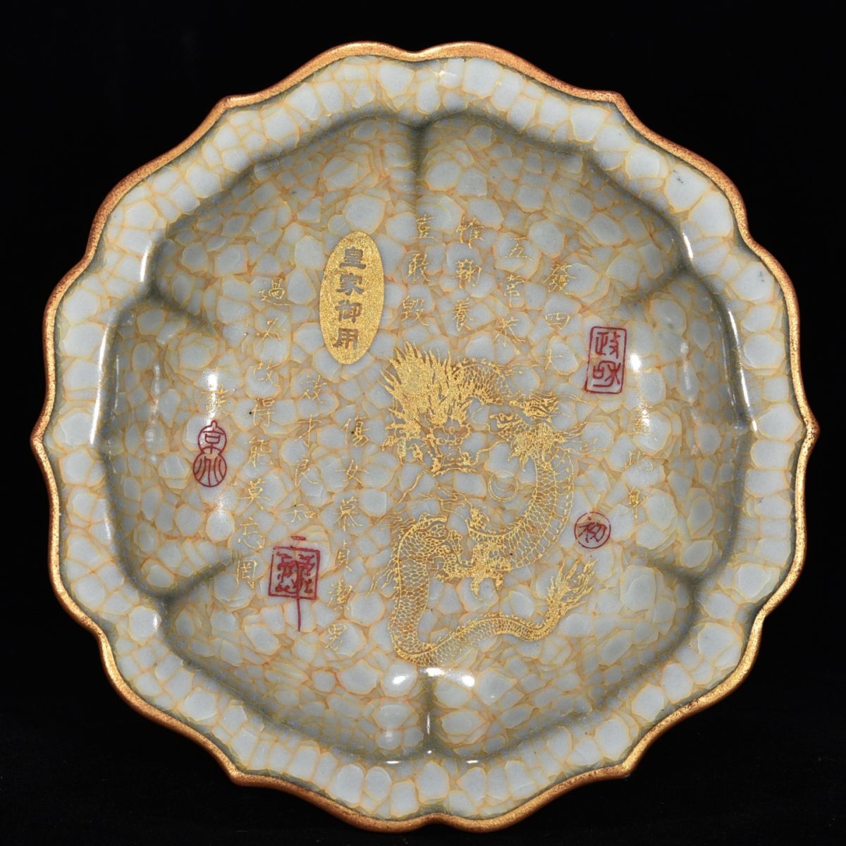 永し 宋時代 官窯 冰裂紋包口銘文 塗金龍紋洗 古陶磁器 陶芸 皿 中国陶瓷器 唐瓷 置物擺件 古美術品 古賞物 収集 旧家蔵出 中国唐物 A2