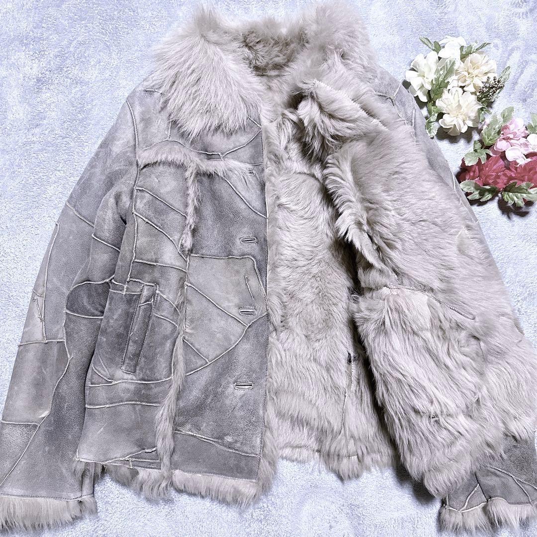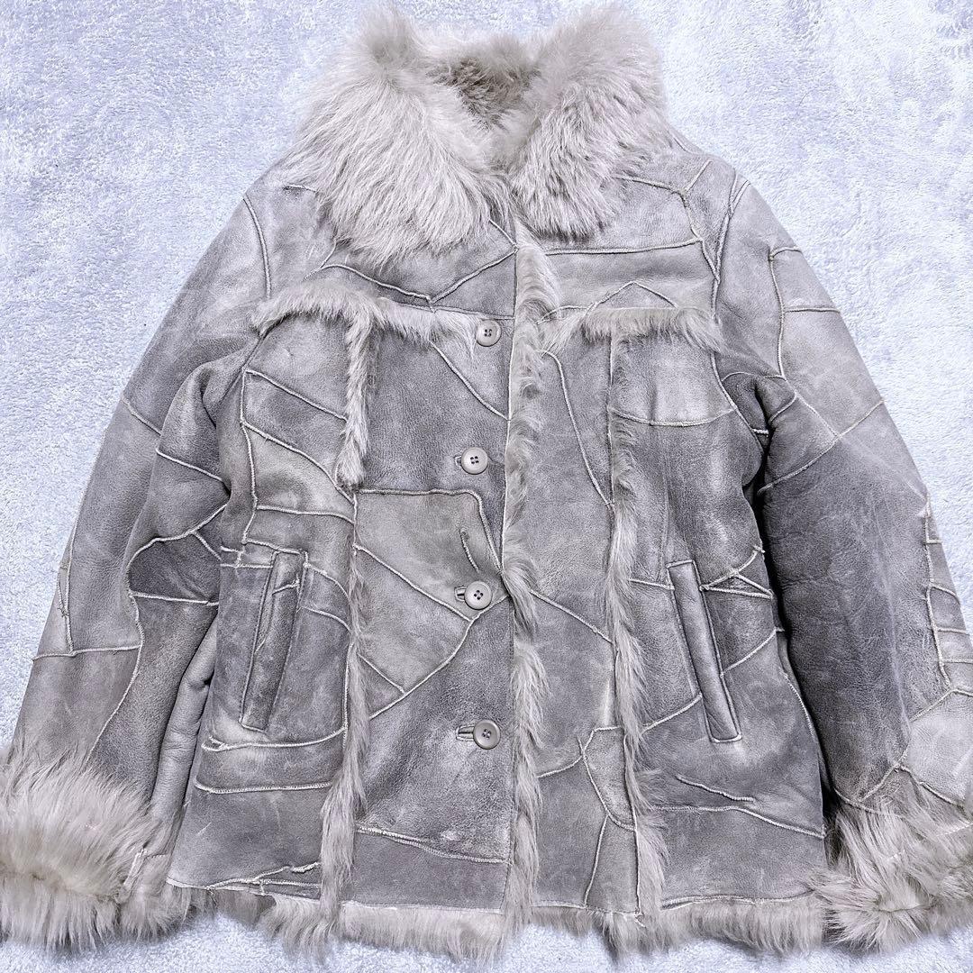 本革 リアルレザー リアルムートン ムートンジャケット ムートンコート ファー パッチワーク 切り替え つぎはぎ レディース