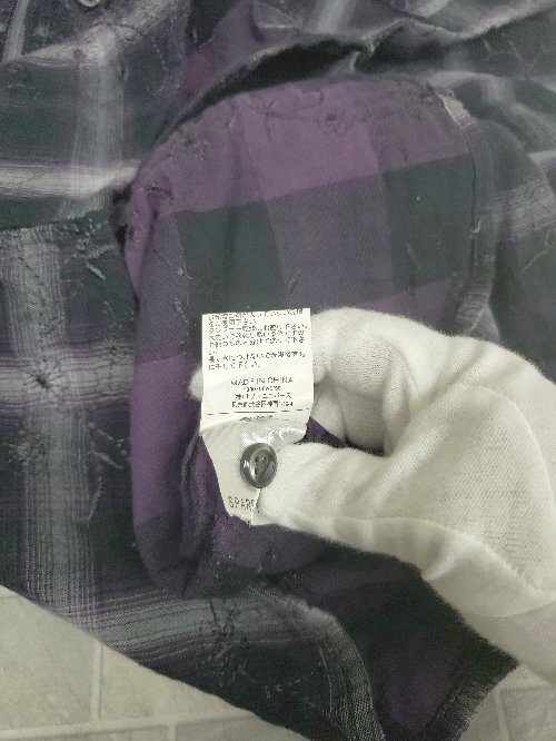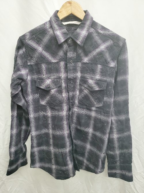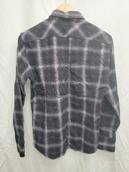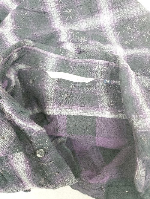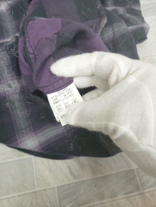 ◇ ⊇ nano universe ナノユニバース チェック柄 刺? 長袖 シャツ サイズM ブラック パープル グレー レディース P