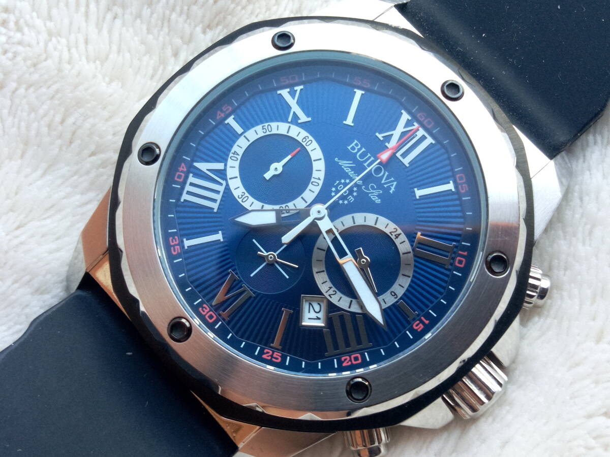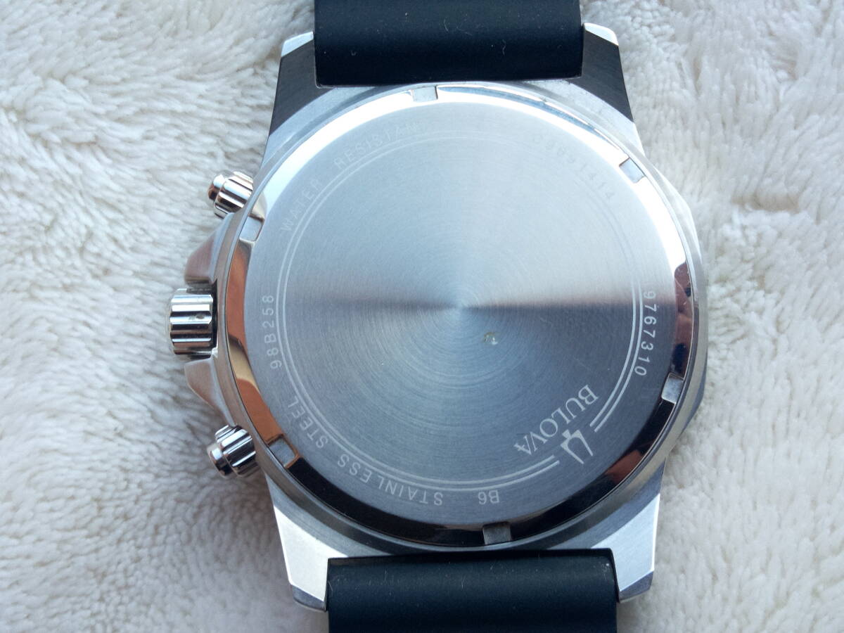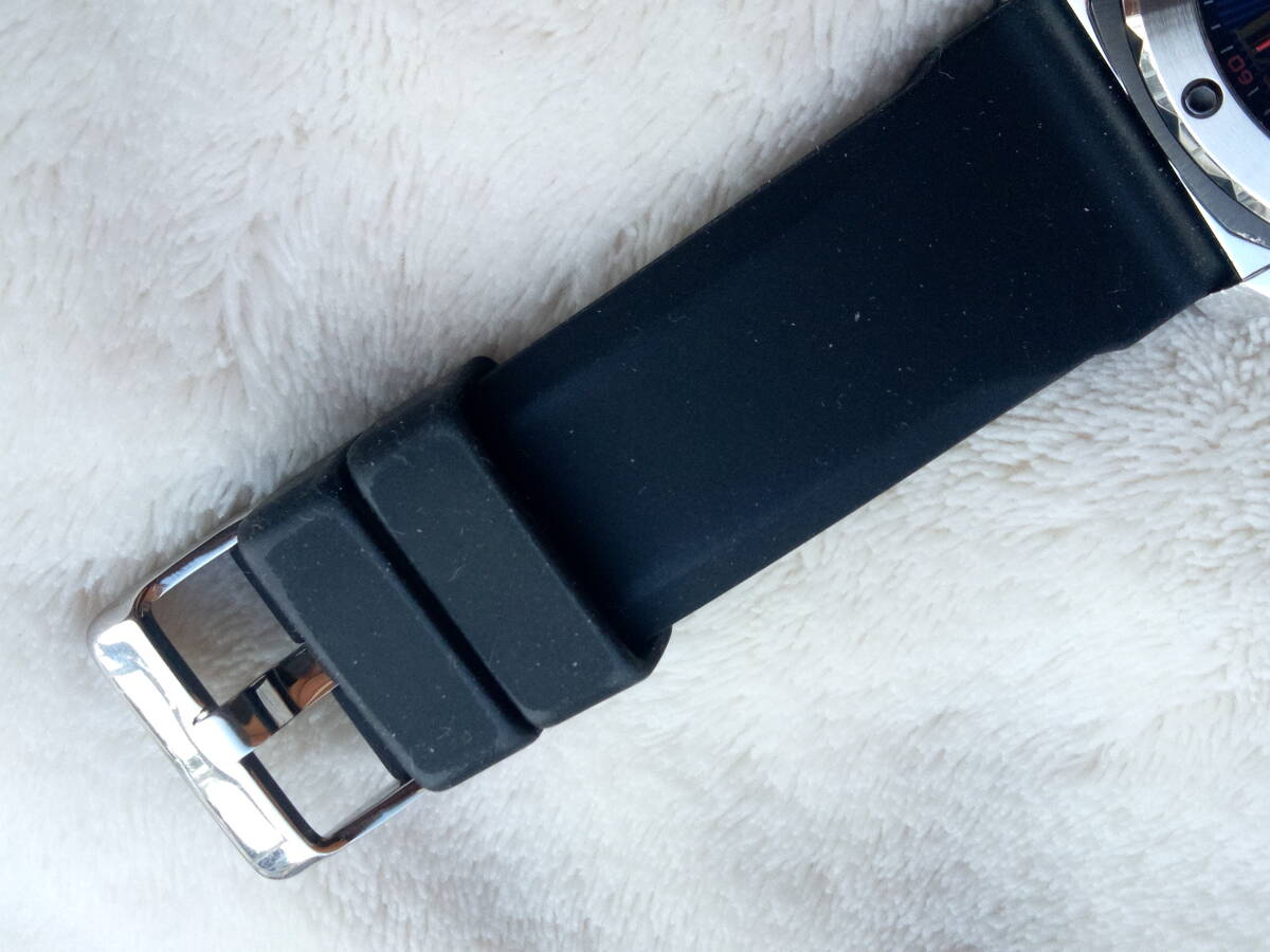左上ラグ先端にやや打ち傷があります。ガラスはきれい。ベゼルケースも薄い擦れ傷程度できれいです。稼働正常でクロノ機能他問題なし。