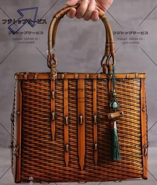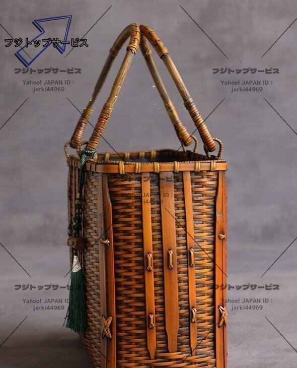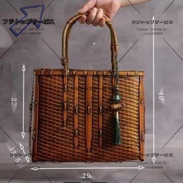 高級感! 超人気☆ 竹バスケット 収納かご おしゃれ竹籠 編み 取っ手 持ち手  手作りトートバスケット