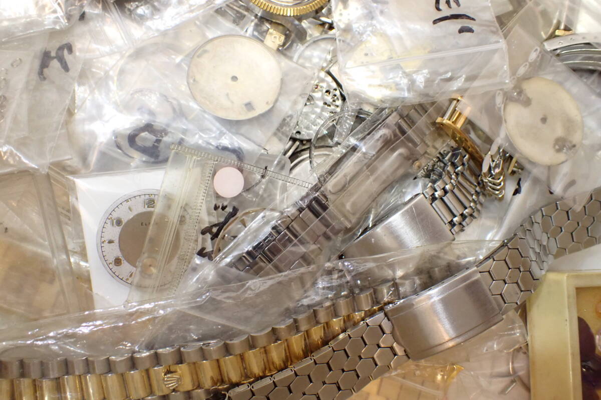 大量 時計店在庫 オメガ/セイコー/シチズン/ラドー等 風防/文字盤/時計本体/ブレス/天然石等 大量セットです。 廃業した時計店の時計、文字盤、ケース、パーツ、文字盤などの大量セットです。 メーカーも様々です。 大量です。 他写真でご確認ください。 ジャンクでお願いします。 ・他にいろいろ出品しています。 !オークション終了後、24時間以内に「お取引を始める」ボタンをクリックして、必ず取引をスタートして下さい。 取引のスタートが無ければ、削除させていただきます。 必ず厳守してください! 「新規ID」「直近で悪い評価が多い方」のトラブル(イタズラなど)が非常に多いです。 当方が、お取引に支障があると判断したID(特に新規ID)は削除します。 ●ジャンク品と記載の物の商品到着時の動作保証はありません。 ●付属品等は、写真に写っているものですべてです。 | ||||