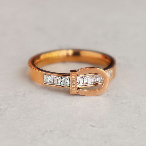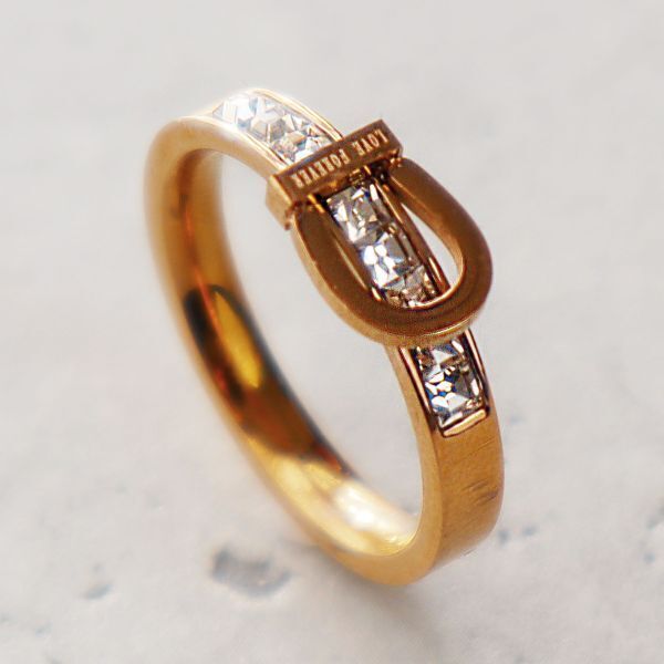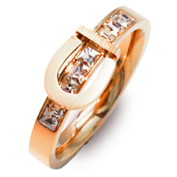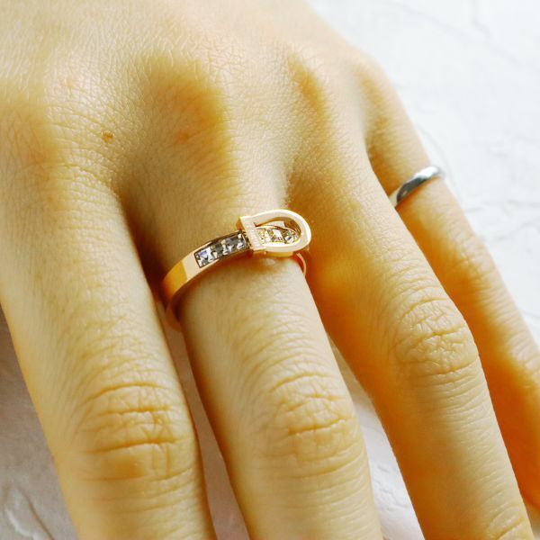 指輪 レディース ステンレス ベルト ホースシュー 馬蹄 お守り ストーン入り 大人 可愛い ポーチ プレゼント ピンキーリング【21号】