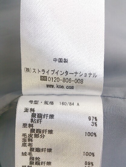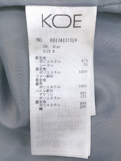◇ koe コエ フェイクファー 長袖 チェスター コート サイズM グレー レディース