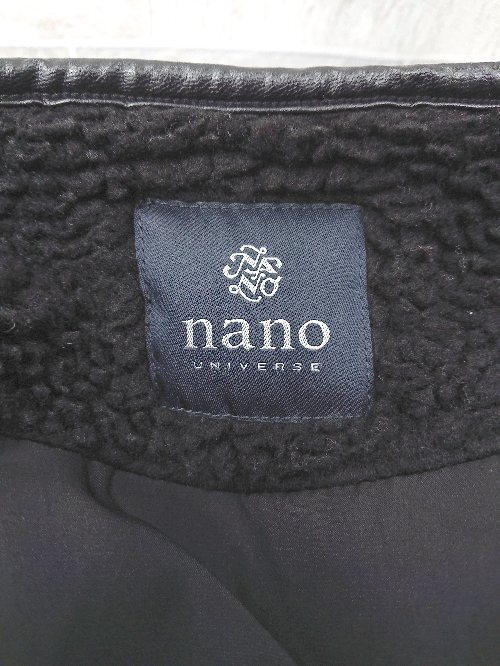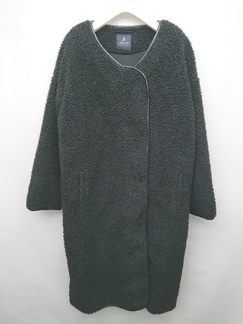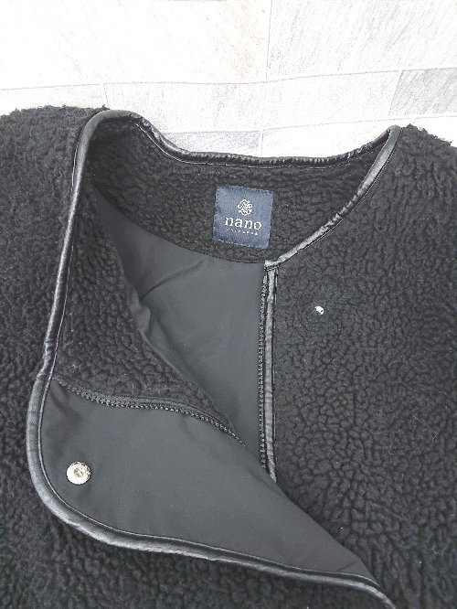 ◇ nano universe ナノ ユニバース ボア ノーカラー パイピング ダブルジップ 長袖 コート サイズ38 ブラック レディース P