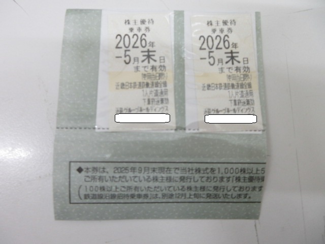 | (3390) 近鉄株主優待乗車券 2026年5月末日まて有効 2枚 | ||