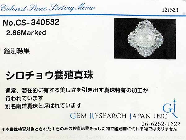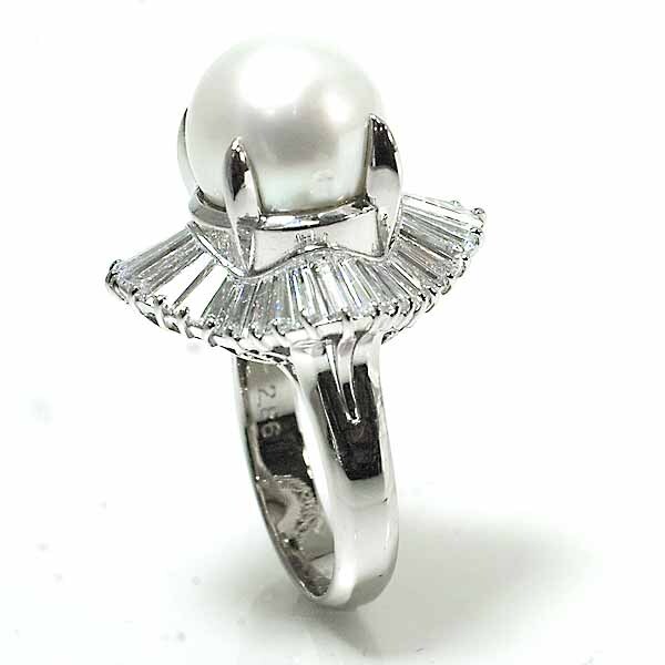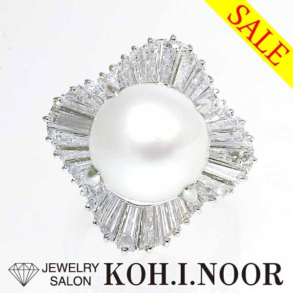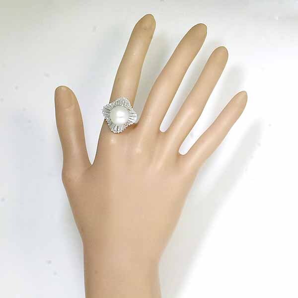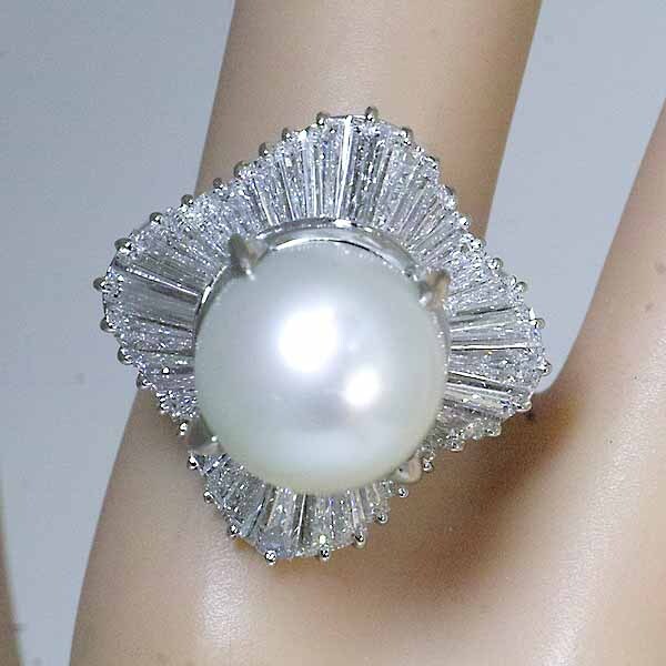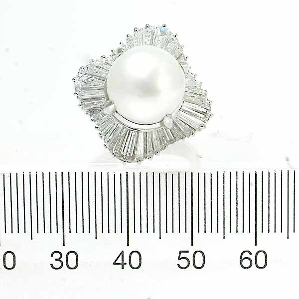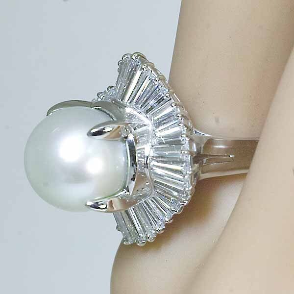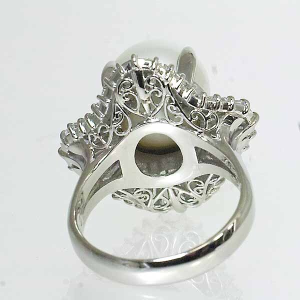 南洋真珠を豪華なダイヤで取り巻いたプラチナ製のファッションリング。