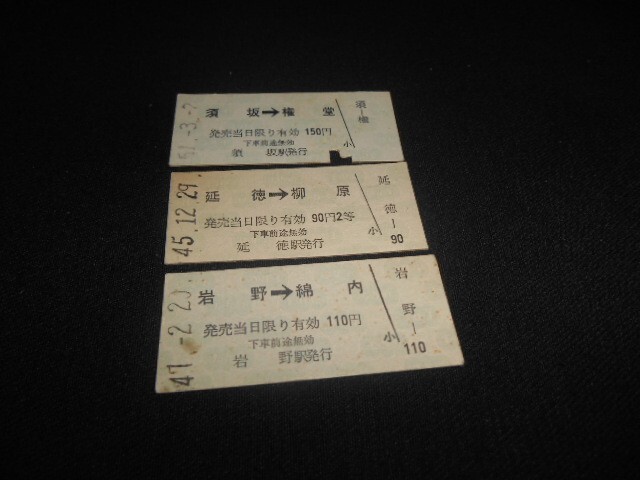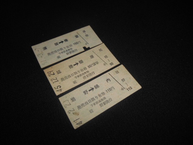 長野電鉄 B型硬券 片矢式 須坂→権堂150円など 計3枚 送料85円