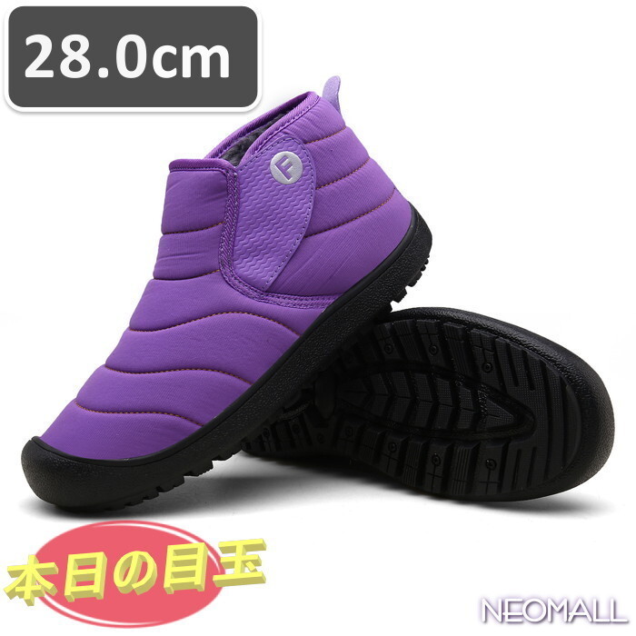 ユニセックス スノーシューズ 【869】 28.0cm パープル ムートンブーツ スニーカー ウィンターブーツ 裏起毛 防水 防寒 防滑 冬用靴 綿靴