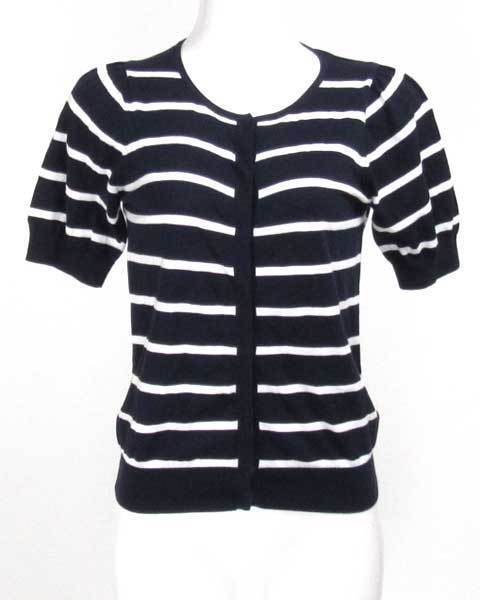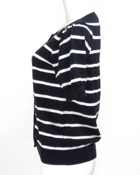 | ノーリーズ(NOLLEY'S)ネイビー白ボーダー半袖ニットカーディガン | ||||