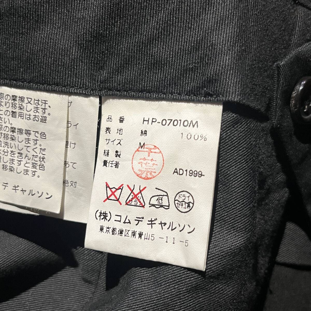 COMME des GARCONS HOMME 99aw コットン2タックパンツ コムデギャルソンオム 1999aw AD1999 90s