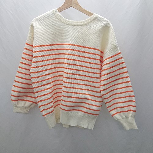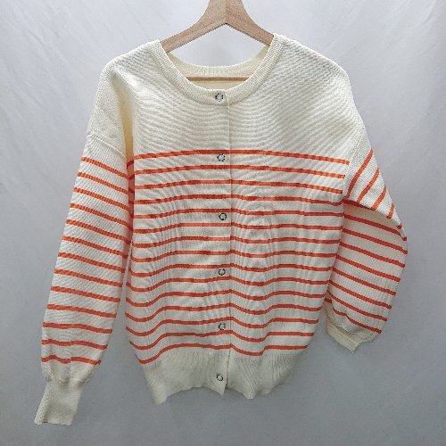 ◇ ⊂ Discoat ディスコート ボーダー柄 長袖 カーディガン サイズF アイボリー オレンジ系 レディース E