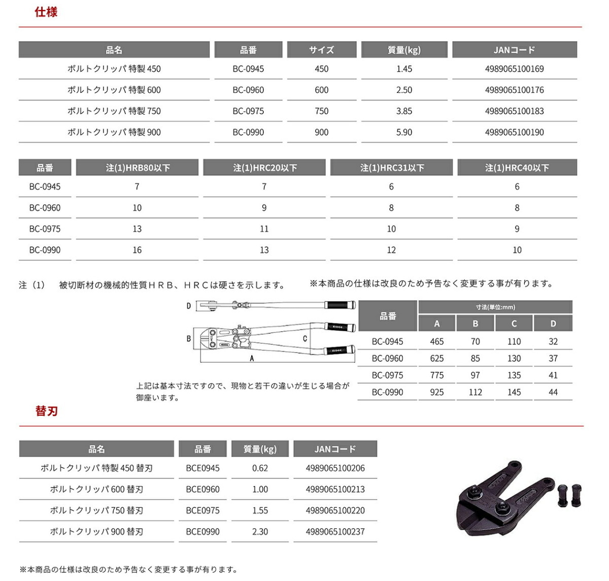 〈MCC〉ボルトクリッパ特製 BC-0960 JAN:4989065100176