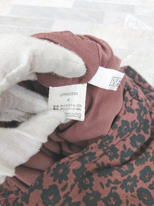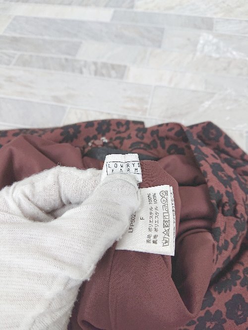 ◇ LOWRYS FARM ローリーズファーム 総柄 ロング フレア スカート サイズF ブラウン ブラック系 レディース P