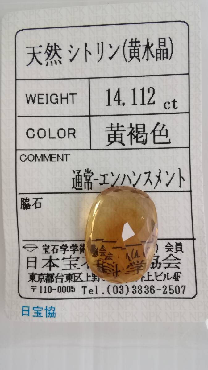 天然 シトリン(黄水晶) ルース 18.8x14x9mm、14.112ct ソーティング付き