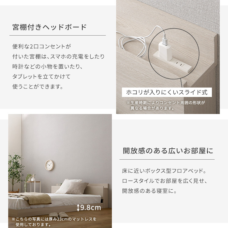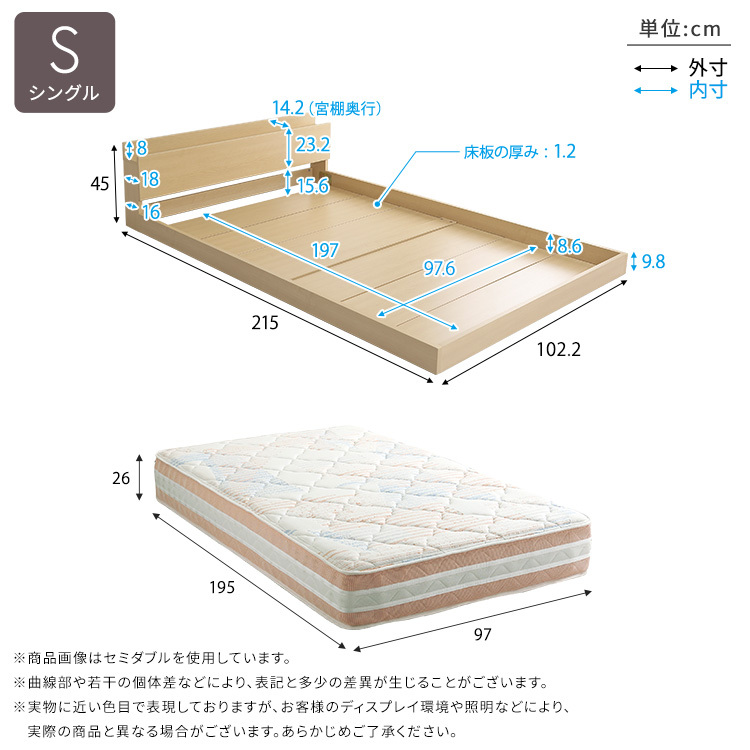 商品サイズ ベッド:(約)幅102.2×奥行215×高さ45cm