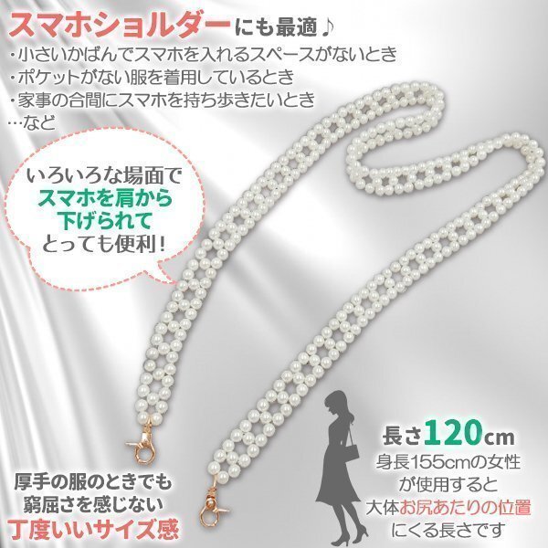 ★ パールストラップ ショルダーストラップ スマホストラップ ストラップ 120cm 2連タイプ ハンドメイド ショルダーバッグ スマホ パール