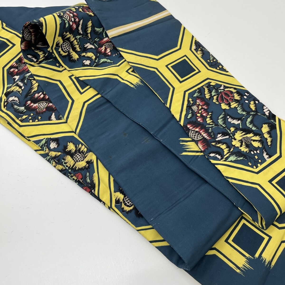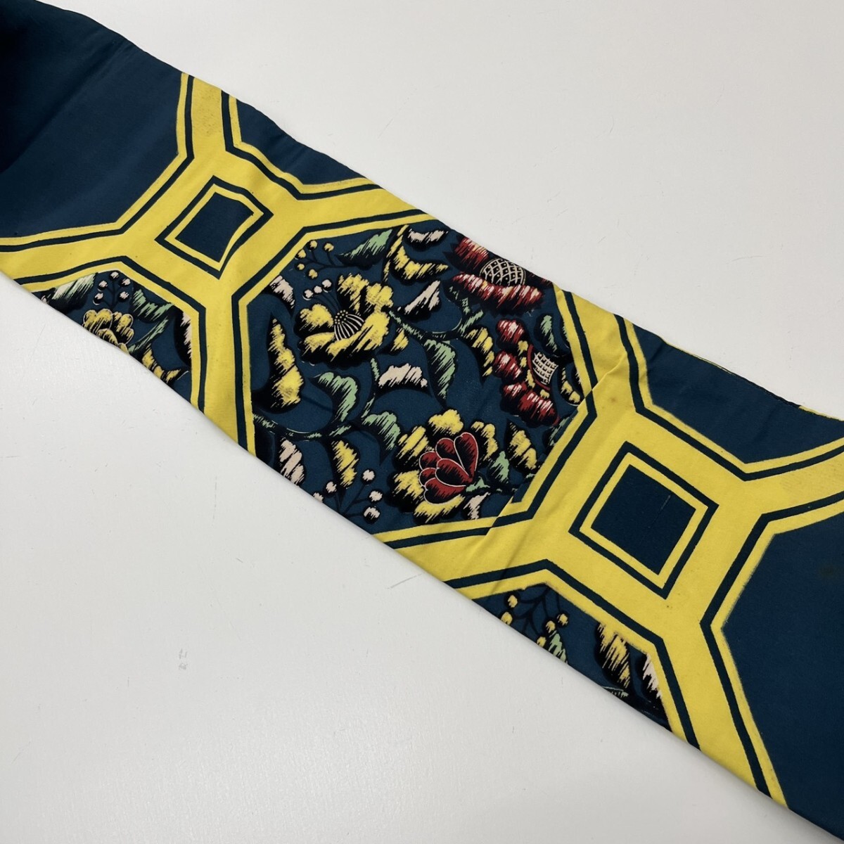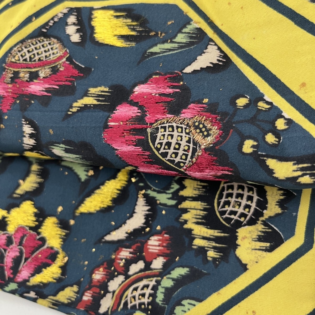 【楓】アンティーク名古屋帯 正絹 刺繍 変わり亀甲に花 九寸 KK-2307