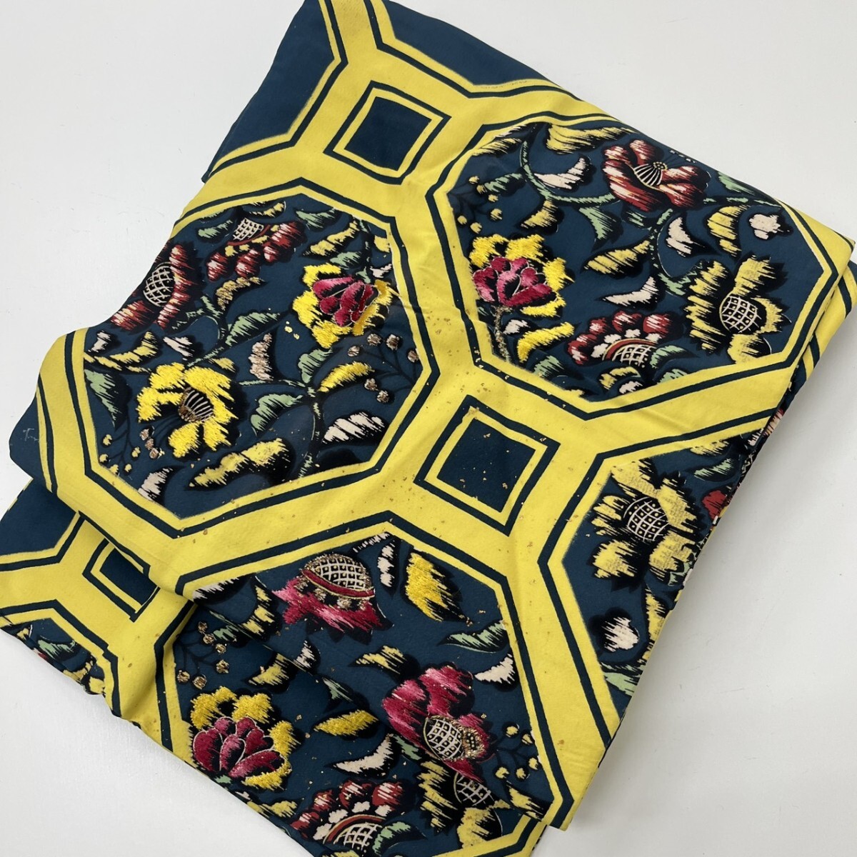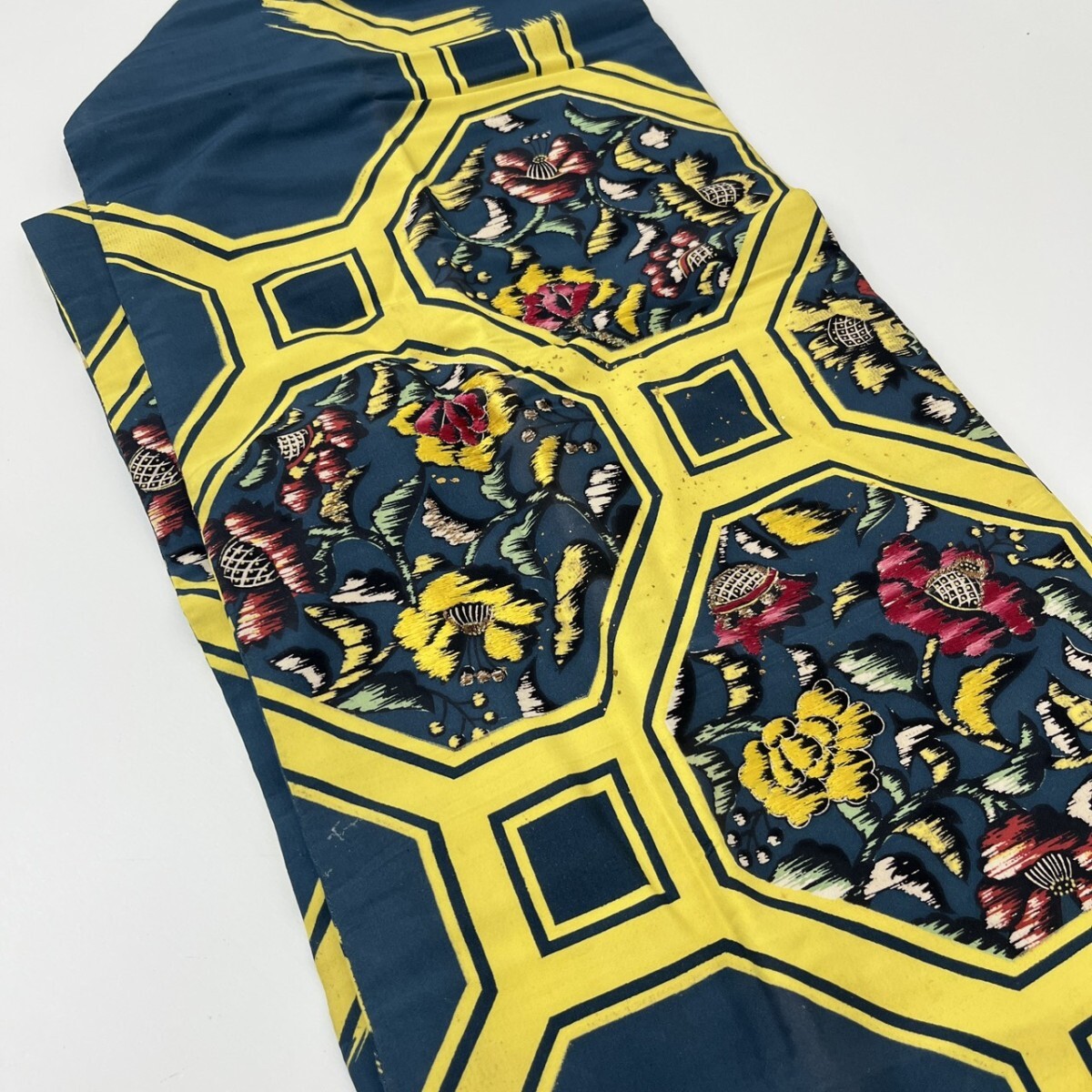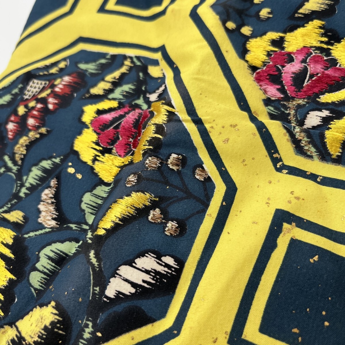 【楓】アンティーク名古屋帯 正絹 刺繍 変わり亀甲に花 九寸 KK-2307