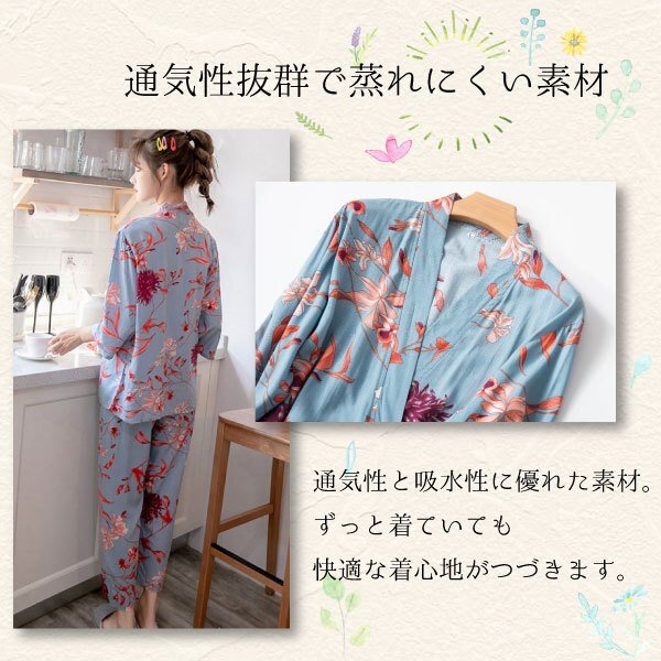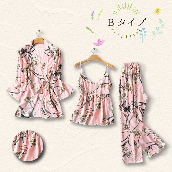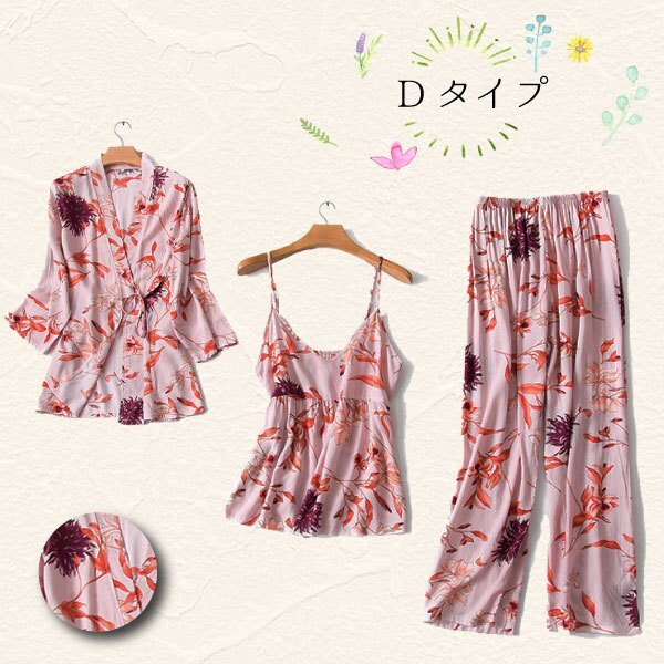 | ☆レディース ルームウェア ※ご購入しましたらオーダーフォームにてご希望のカラー、サイズをお知らせください。 カラー:Bタイプ, Dタイプ サイズ:M, L, XL 【商品名】 レディース ルームウェア 【素材】 コットン 100% 【セット内容】 ◆ショート丈ガウン ◆キャミソール ◆パンツ 【サイズ】 ■M ■L ■XL 【カラー】 ・Aタイプ:全てのサイズ在庫切れ ・Bタイプ ・Cタイプ:全てのサイズ在庫切れ ・Dタイプ 【特徴】 コットンの柔らかな肌触りで、リラックスタイムに導くルームウェアです。 吸水性と通気性に優れており、サラッとした着心地良さが続きます。 3点セットで組み合わせ次第で、夏でも肌寒い時でも使えるお得なルームウェア♪ ボタニカルな柄でリラックスタイムをおしゃれに演出。 ガウンは紐タイプ、ボタンタイプよりもゆったり着れます。 ウエストゴムでゆったりラクチンのパンツ。着心地もサラサラです。 | ||||