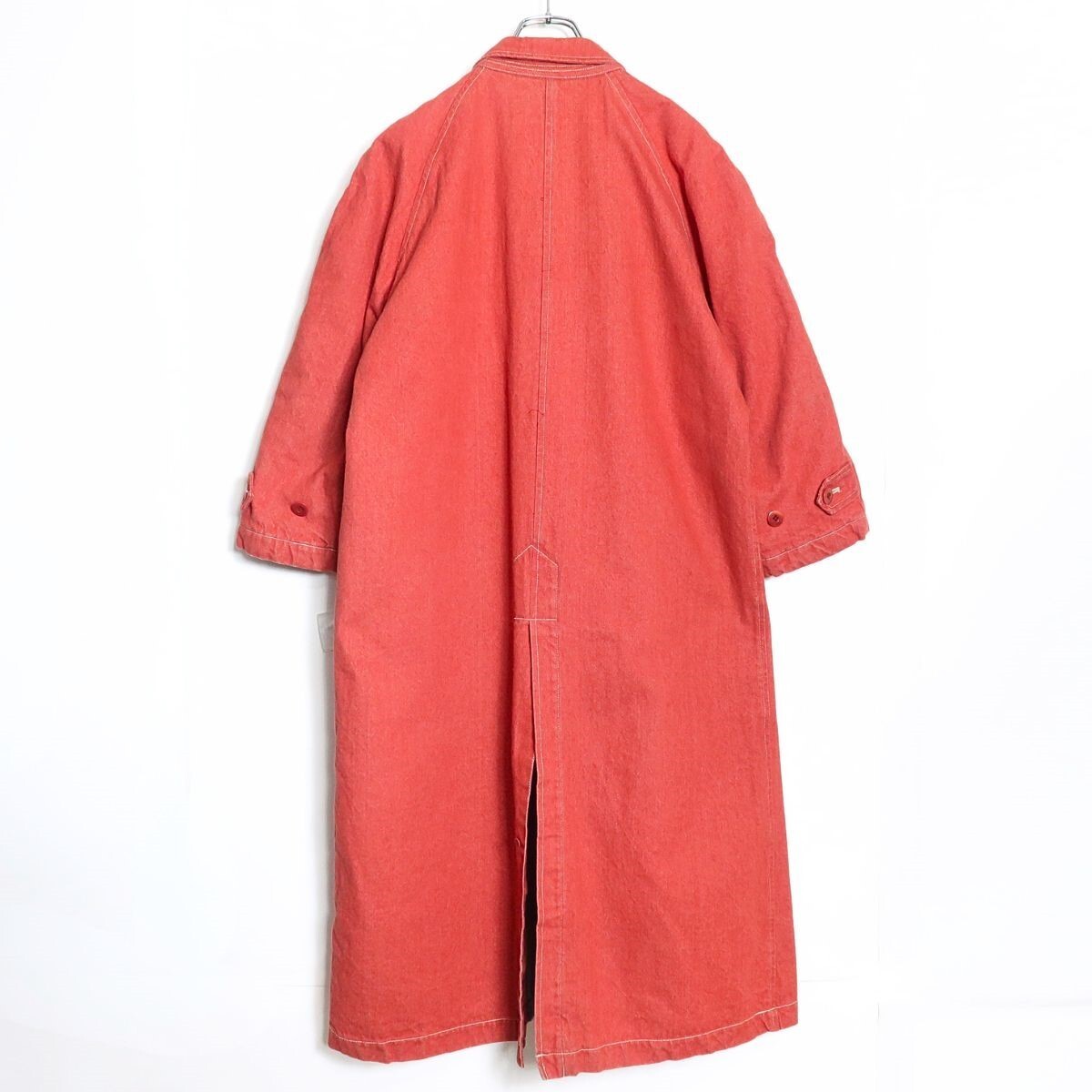 | 商品説明 | 【実寸約】裄丈77バスト116着丈116(cm) 【サイズ表記】 なし。実寸をご参照くださいませ。 【素材】綿100% 中わた:ポリエステル100% 【状態】普通の使用感のあるお品物 【デザイン】 赤系 デニムのロングコートです。 中綿入りであったか♪ フロントは上から下まで比翼仕立てのボタンで開くデザイン。 厚手/無地/キルティング裏地あり/ポケットあり |
