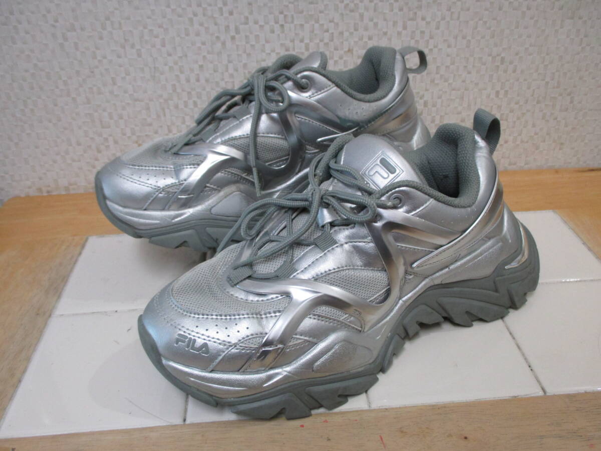フィラ ELECTROVE3 COSMIC WFW23100-097 厚底スニーカー メタリック シルバー 25㎝ FILA 佐川急便700円 I11/26