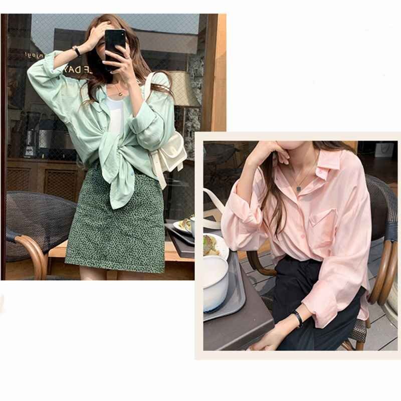 落ち感のあるサラリとした肌触り長袖スキッパーブラウス