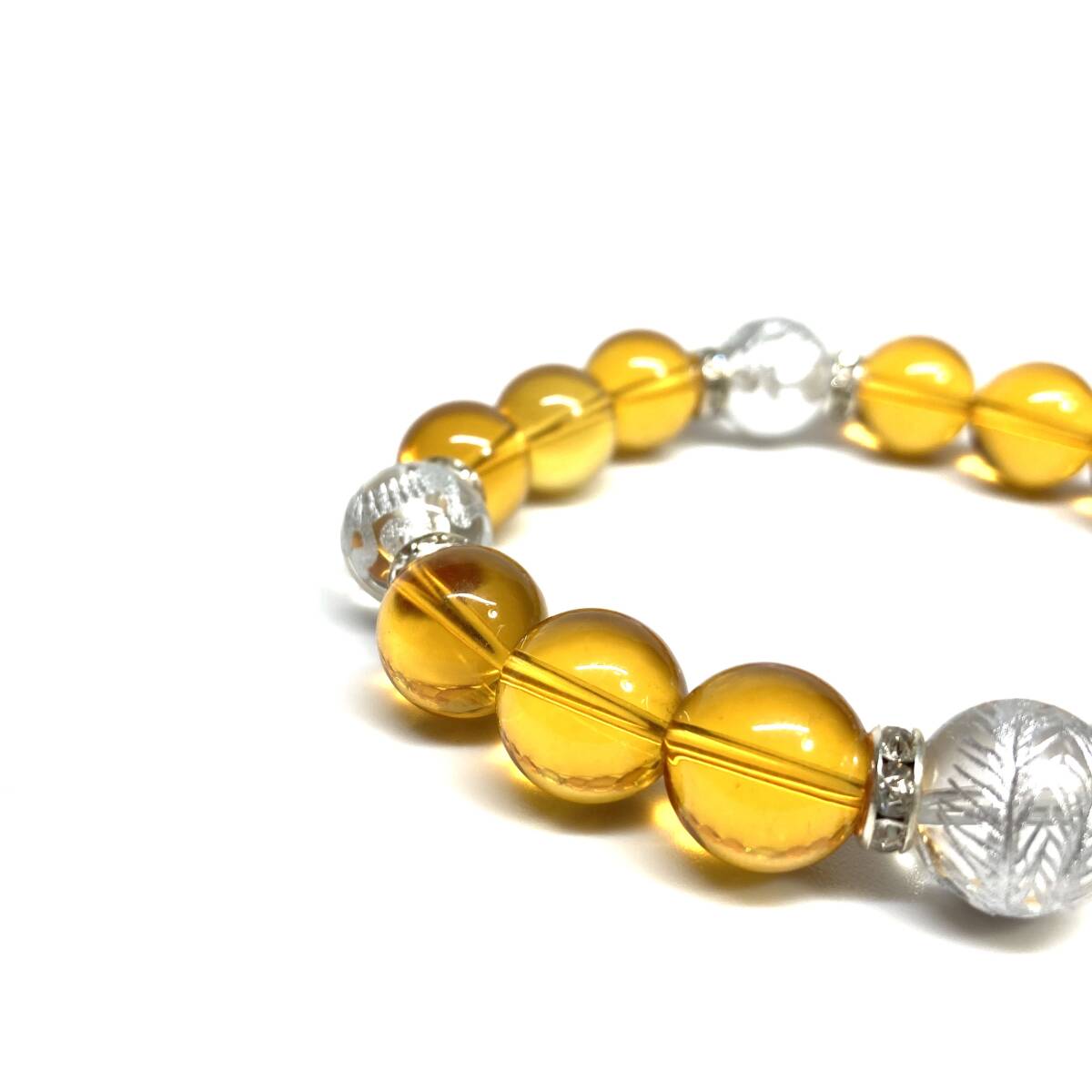 四神獣銀彫水晶×シトリン 12mm パワーストーン ブレスレット天然石 青龍 白虎 玄武 朱雀 運気上昇 金運 健康 お守り 四神獸 四神相応 S