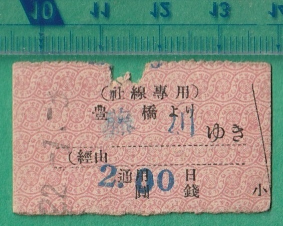 鉄道切符87■名古屋鉄道 社線専用 豊橋より藤川ゆき 2円 22-1.3 *半硬券