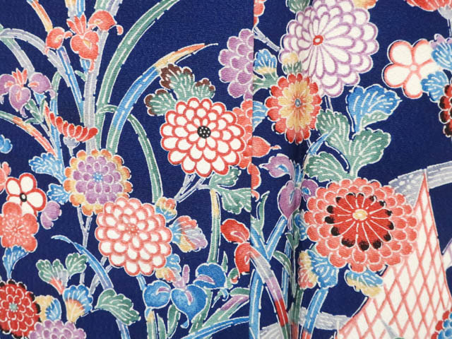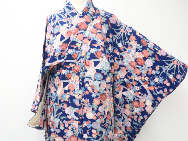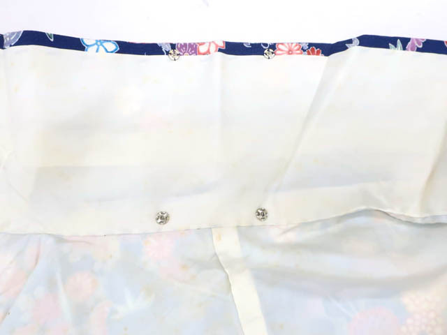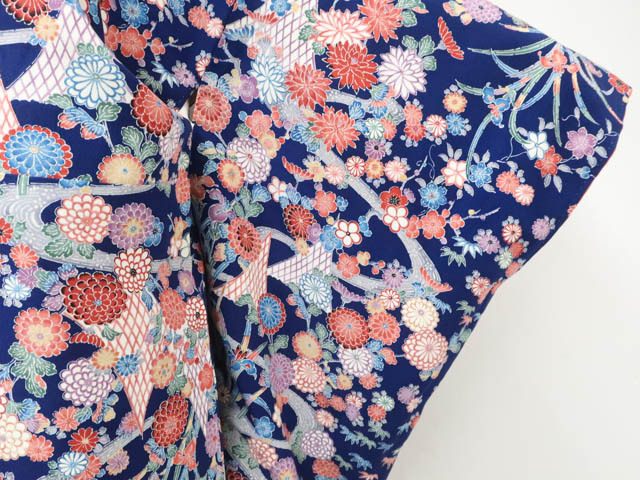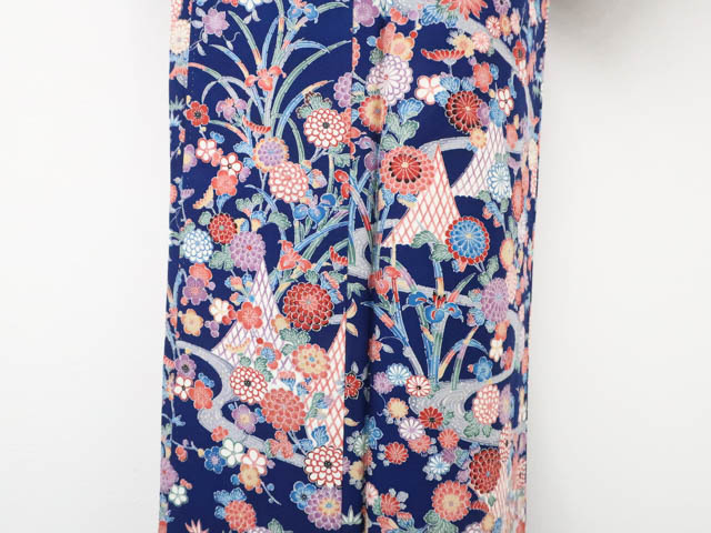 リサイクル商品のため、衿裏胴裏全体にしみがございますが着用可能なお品です。 地色は濃い青です。 1枚目の画像が近いお色かと思われます。 素材は正絹です。 |