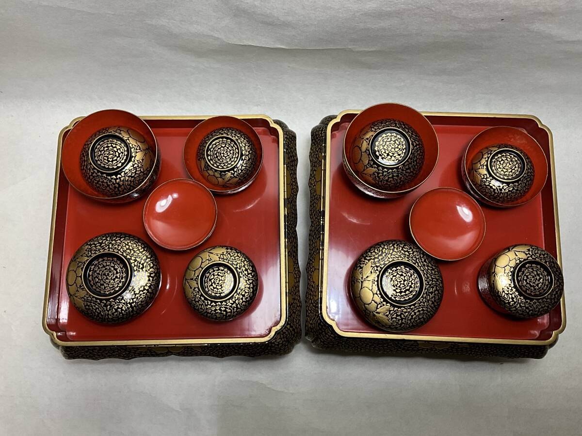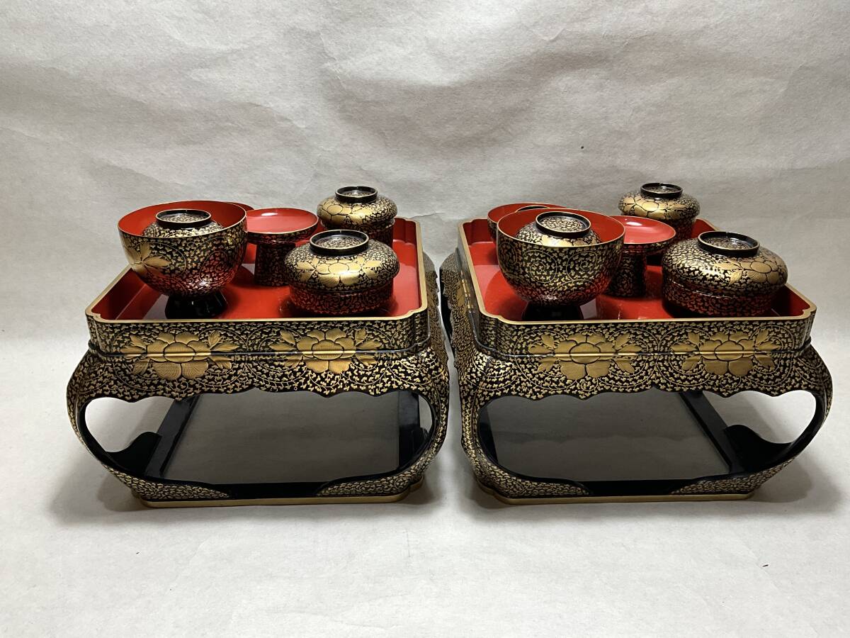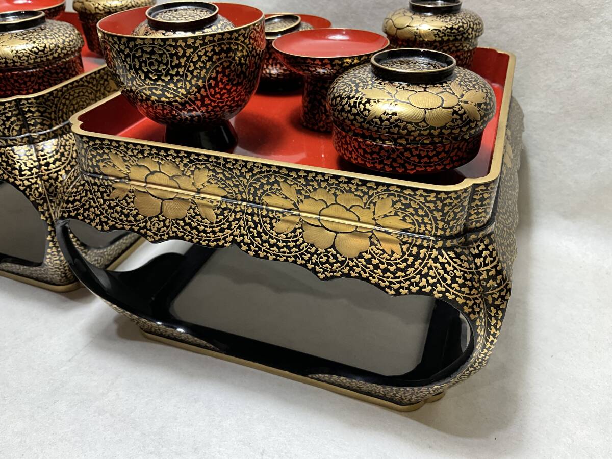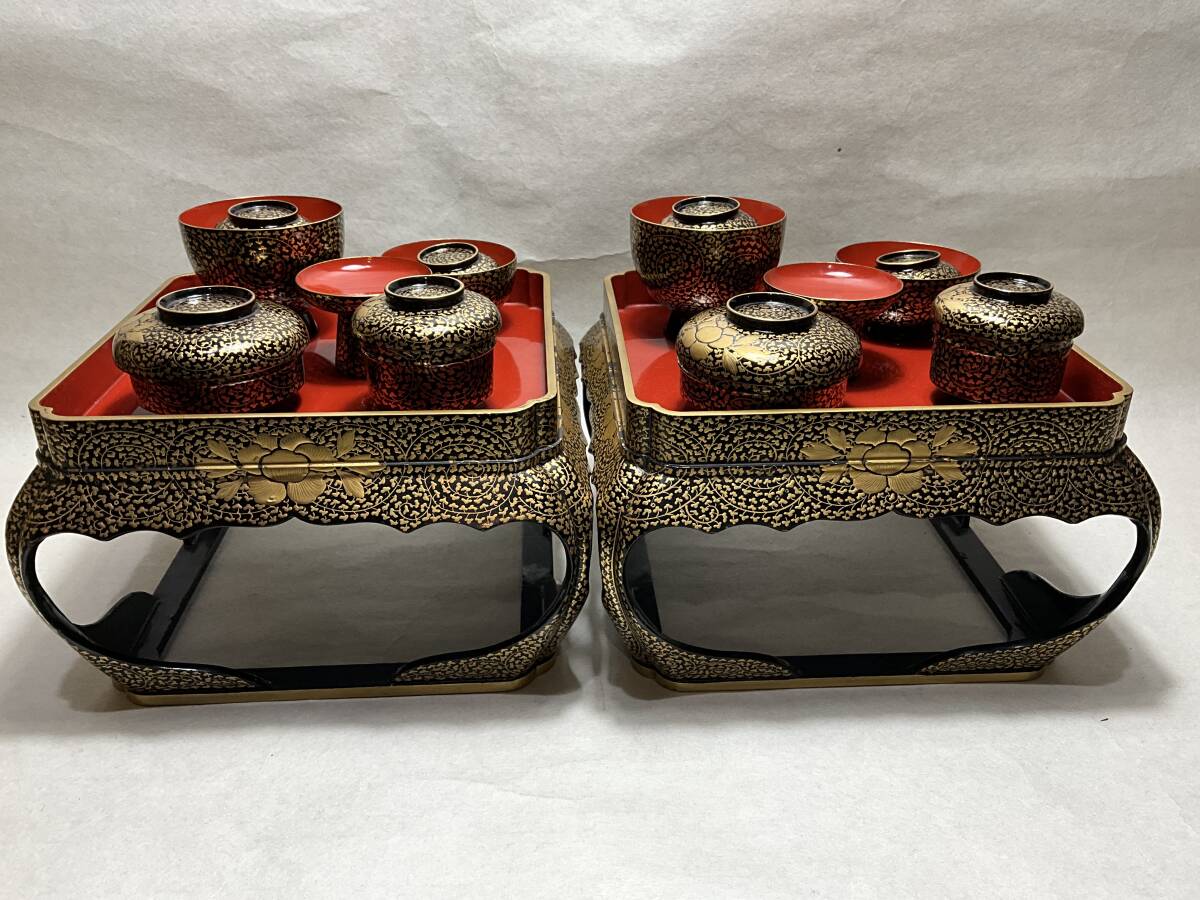 大きさは画像を参考にして下さい。大正昭和初期頃の金蒔絵の雛道具です。重箱の共箱はありません。