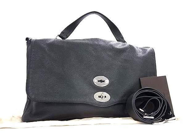 1円 ■新品同様■ ZANELLATO ザネラート ポスティーナ レザー ターンロック 2WAY ビジネスバッグ ショルダー 斜め掛け ブラック系 BS1368