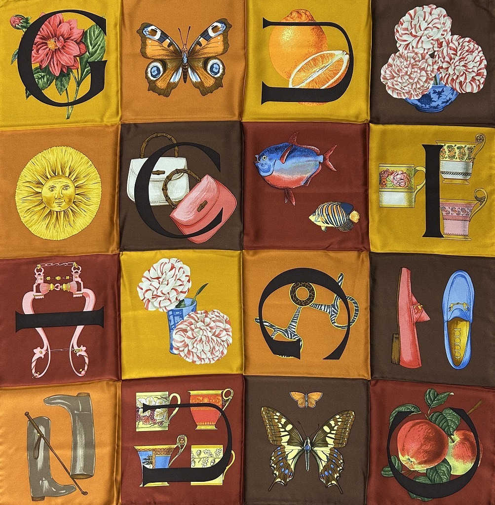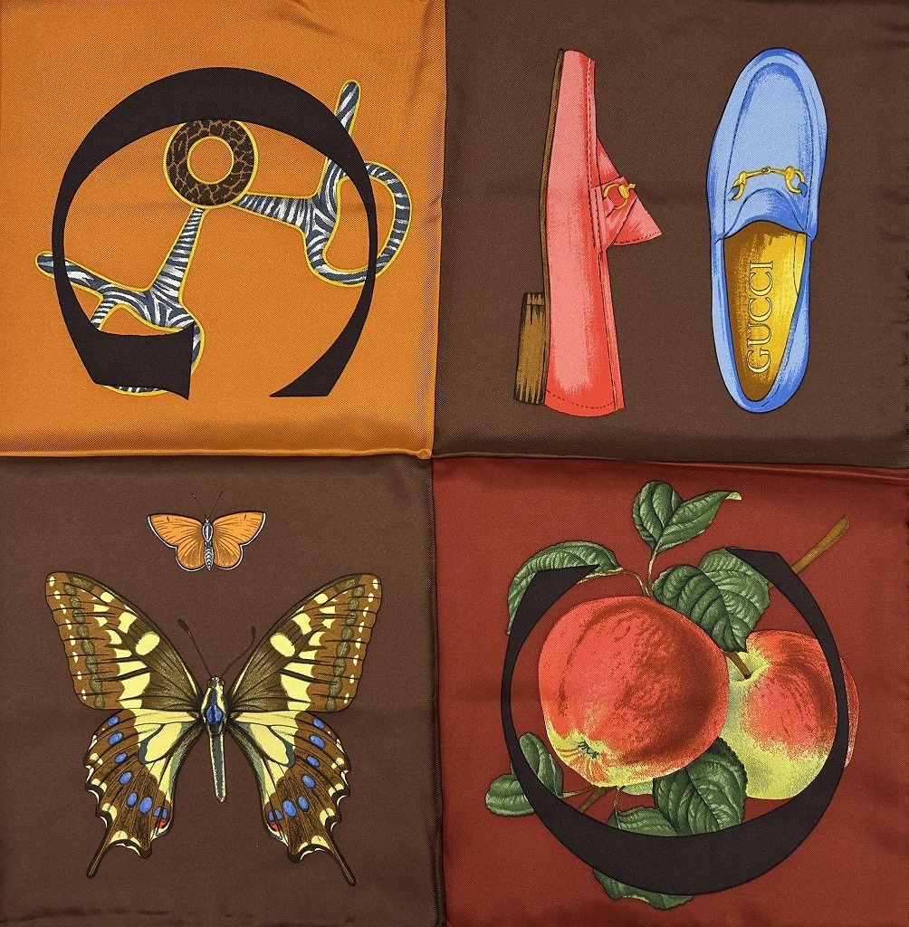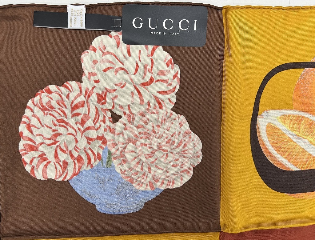 グッチ GUCCI シルクスカーフ 90サイズ ブラウン系