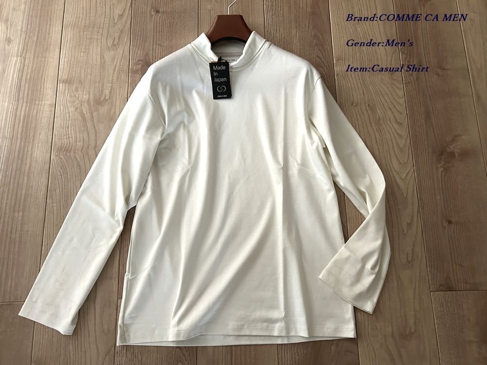 新品訳有り COMME CA MEN コムサメン シーアイランドコットンスムース シルケットモックネックTシャツ 01白 Mサイズ 40TI05 定価19,8