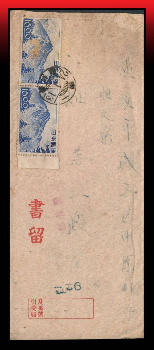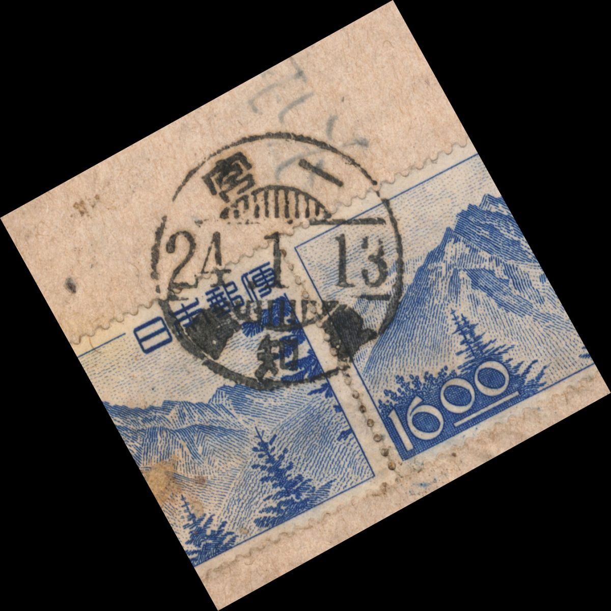 ●過剰承諾印(薄印)|産図穂高岳16円2枚/書留20円2倍重量書状5円+5円=10円 櫛型印:一宮/24.1.13/(愛知縣) エンタイア
