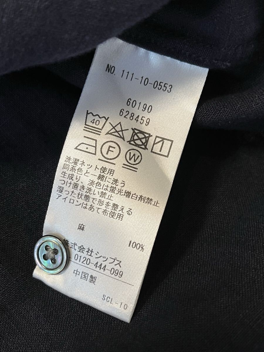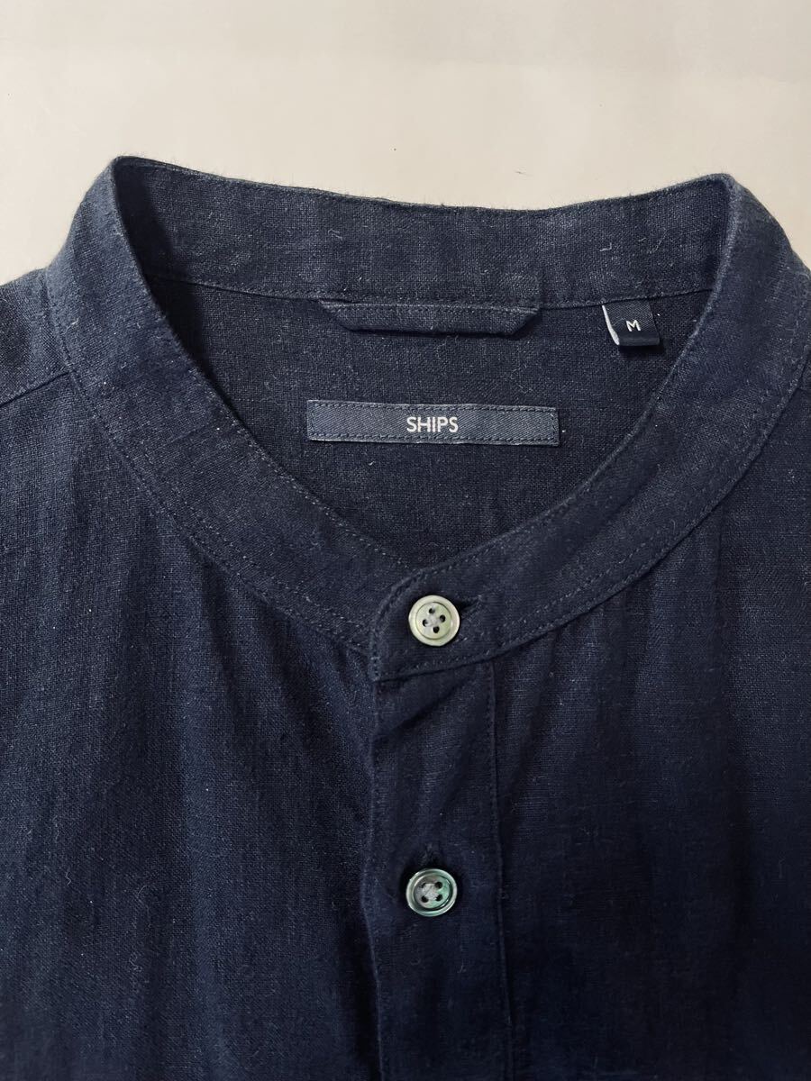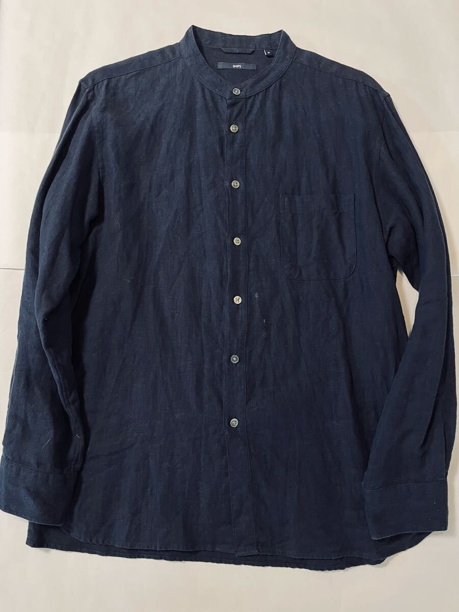 SHIPSのリネンシャツ。やや厚めのしっかりとしたリネンです。スタンドカラーでゆとりのある現代的なデザインです。