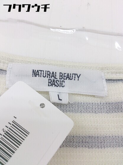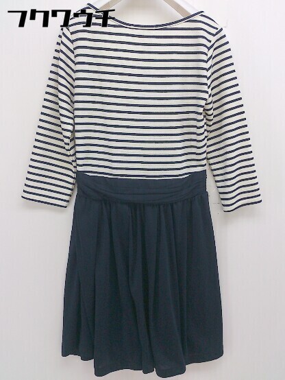 ◇ NATURAL BEAUTY BASIC ボーダー 七分袖 ミニ ワンピース サイズL アイボリー ネイビー系 レディース