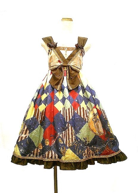 ALICE and the PIRATES の Escape~月夜の囚われ兎~柄 ジャンパースカートII &バレッタ2点セットです。 『月にうさぎ』をテーマに和のエッセンスを取り入れた今までにない個性的なオリジナルプリントシリーズです。月に囚われたうさぎのお姫様、満月の夜にだけ現れる星の道、秘密の鍵を持つうさぎの皇子…2人の星空を駆ける逃避行の行方は…そんなストーリーが込められています。ウエストの大きなリボンブローチ、腰リボン紐は取り外し可能です。身幅40 肩からの着丈96(cm)。15336(70)20251120