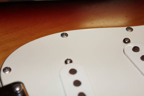 当方はFENDER USA、JAPANのストラト両方のピックガードに装着しておりますが、問題なく付いております。