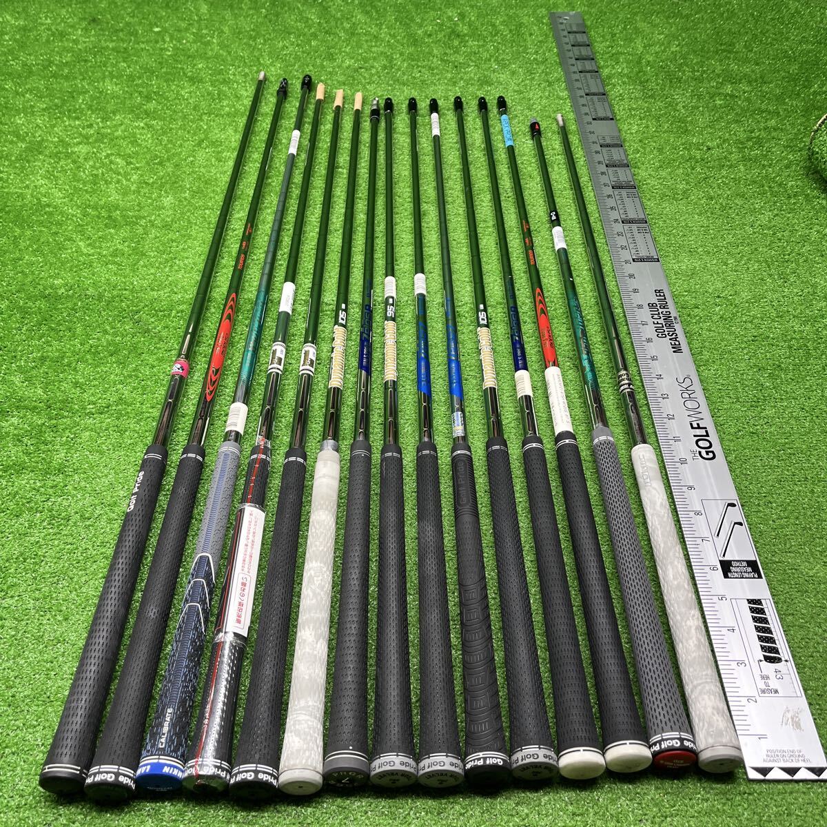 最近は出品が少なくなってしまい申し訳ありません。 メーカーもさまざまで、長さもドライバー用、フェアウェイウッド用なども入ります。インチメジャーを横に付けましたのでご参照下さい。 中には試打用のシャフトも混じります。 尚、フレックスは画像をご参照頂ければ思いますが、どうしても詳しい情報が聞きたい場合にはお問い合わせ下さい。 小さな傷などは画像では判断が出来ない場合があるかもしれませんが割れなどはチェックをしておりますのでよろしくお願いいたします。