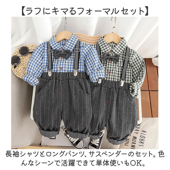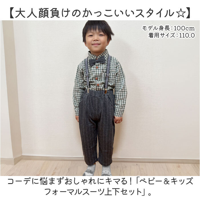 | 商品説明 | ・・【大人顔負けのかっこいいスタイル☆】 ・コーデに悩まずおしゃれにキマる!「ベビー&キッズフォーマルスーツ上下セット」。 ・【ラフにキマるフォーマルセット】 ・長袖シャツとロングパンツ、サスペンダーのセット。色んなシーンで活躍できて単体使いもOK。 ・【カジュアルなチェックシャツ】 ・フロントボタン付きの、スタンダードなカタチに仕立てたシャツ。蝶ネクタイ&胸ポケット付き。 ・(※)蝶ネクタイは縫い付けられています。 ・【ストレスなく履けるロングパンツ】 ・締めつけ感の少ないゴム仕様で、着脱がスムーズ。やや起毛感のある素材&左右にポケット付き。 ・【心地よくフィットしてズリ落ち防止】 ・サスペンダーでパンツのウエスト位置を優しく固定。すっきりとしたシルエットをキープ。 ・【特別な日にとっておきの1着を】 ・軽やかで、小さなお子さまも着用しやすい!発表会などのイベントやお呼ばれシーンにおすすめ☆ |