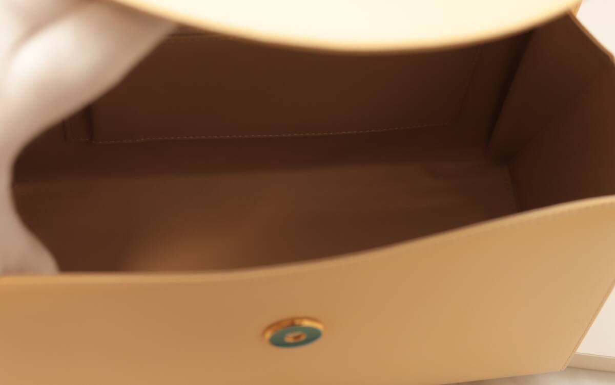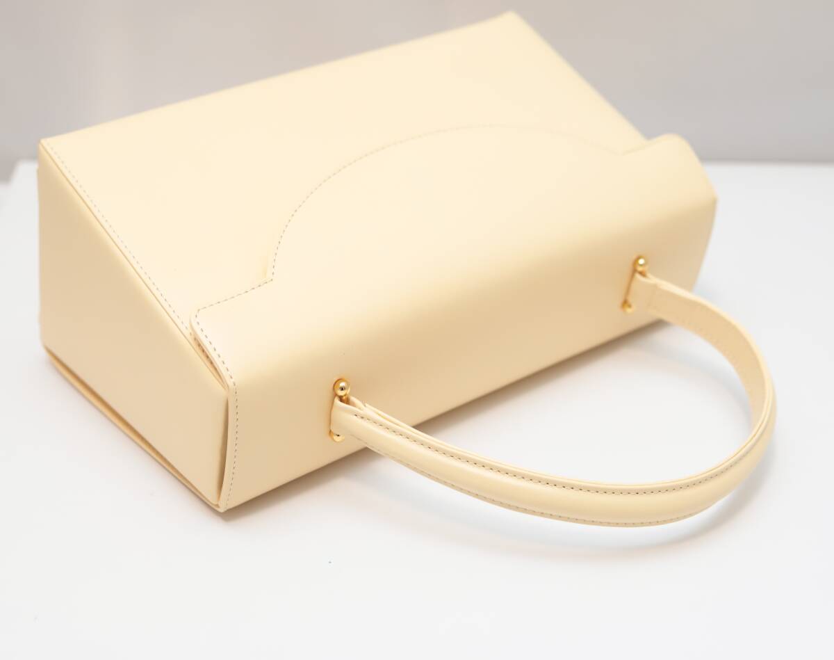 「真珠の小箱」という名にふさわしいフォルムを表現するために、木の型に革を貼り合わせながら型を作っていく『貼りこみ』という珍しい手法を使ってお仕立てされています。