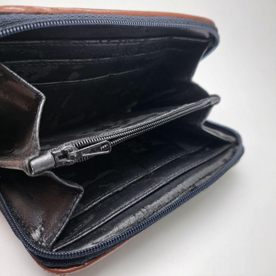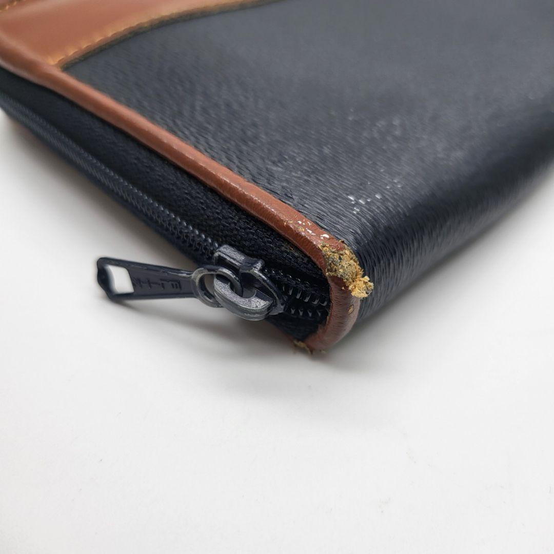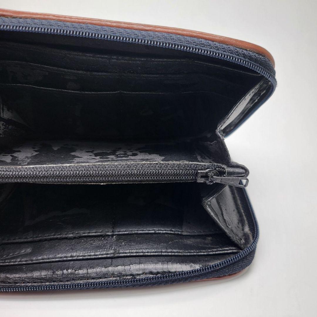 外側のレザーに剥げがあり、特にファスナー部分はダメージが目立ちます。