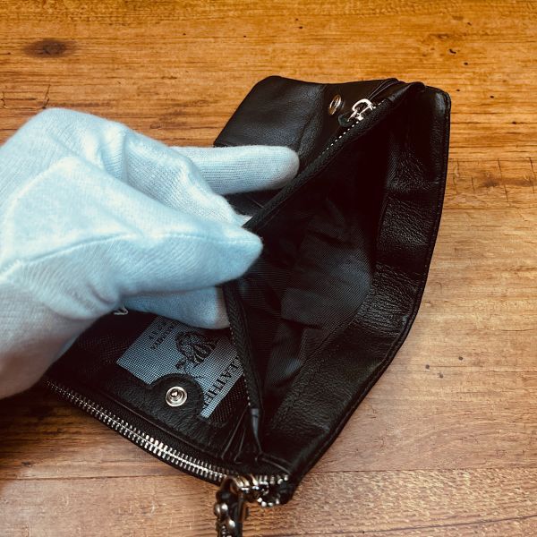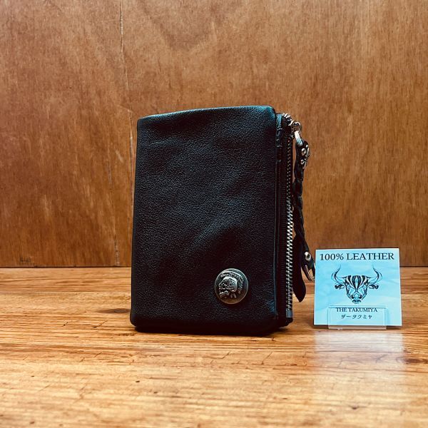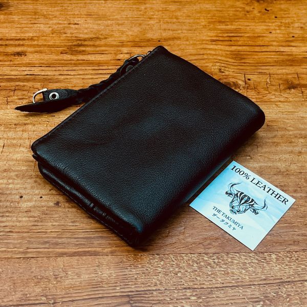 ミドル メンズ 財布 二つ折り財布 本革 牛革 クロムレザー バイカー ウォレット チャーム 新品 未使用 送料無料 一円 1円 ブラック黒
