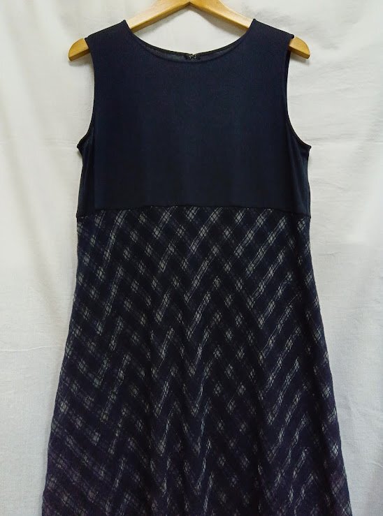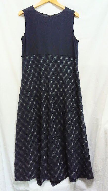 PRIDE☆プライド チェック 切替 ノースリーブワンピース 40(L) ネイビー (株)キング 美品【中古】Y250930002