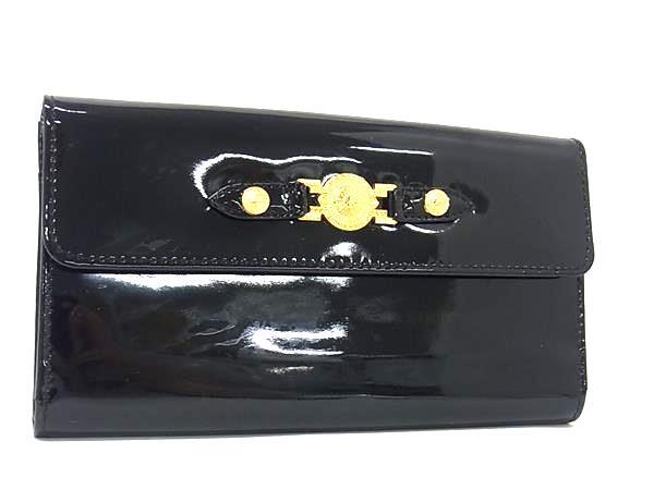 VERSACE ヴェルサーチ サンバースト パテントレザー 二つ折り 長財布 ウォレット 札入れ 小銭入れ レディース ブラック系 DJ4104