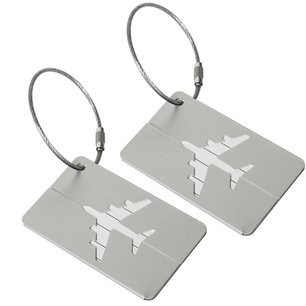 ◆アルミスーツケースタグ 2枚セット トラベルネームタグ 荷物タグ ラゲッジタグ 紛失防止 目印 海外旅行 出張 キャリーケース ネームホルダー 旅行タグ 【シルバー2枚】APKH02S